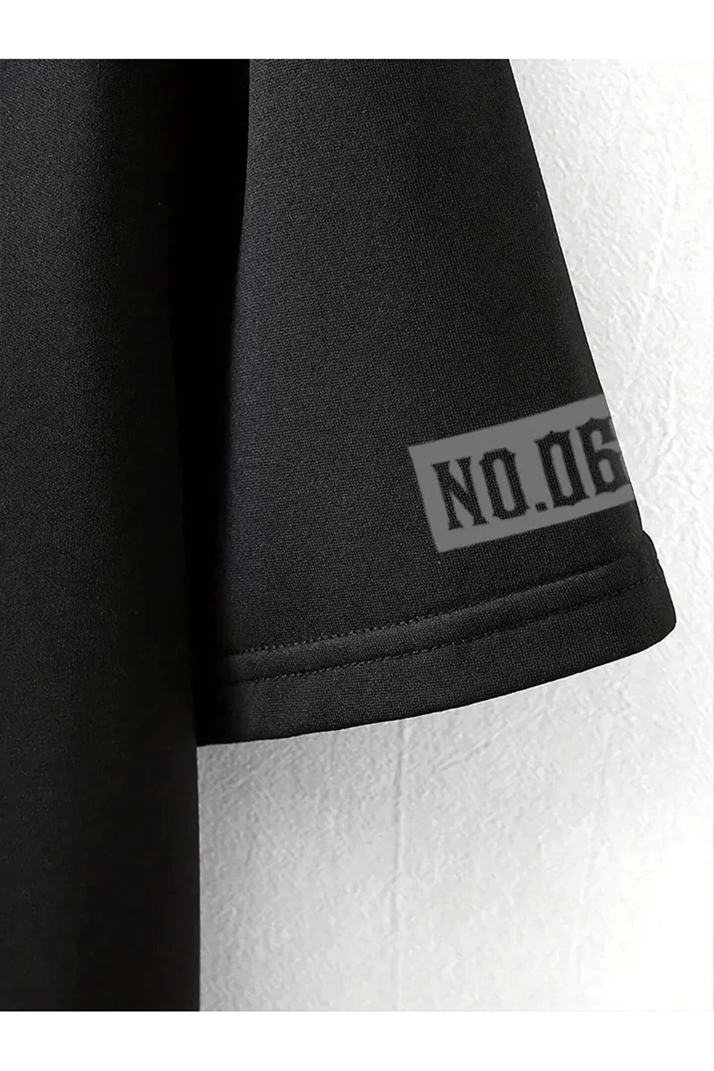 cakır and moniva LB Ön Arka Baskılı Oversize Bisiklet Yaka Yazlık T-shirt - Siyah