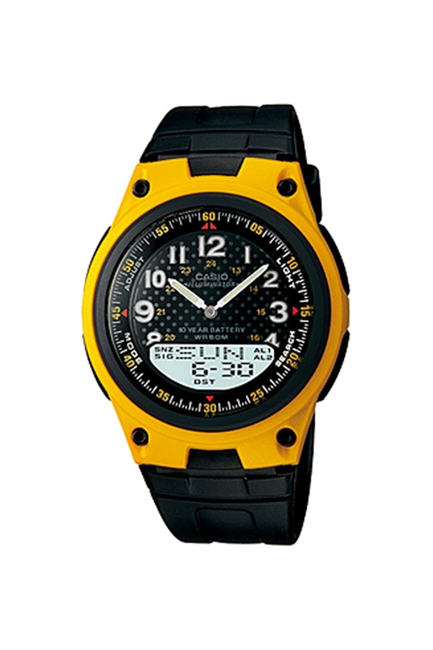 Marka : Casio Cinsiyet : Erkek Kasa Cinsi : Pilastik Kadran Rengi : Siyah Kordon Cinsi :Silikon Kordon Rengi :Siyah Makine :Analog dijital Cam :Mineral Takvim : Var Kronometre : Var Alarm : Var Kasa Çapı (mm) :38mm Su Geçirmezlik : 10 Atm