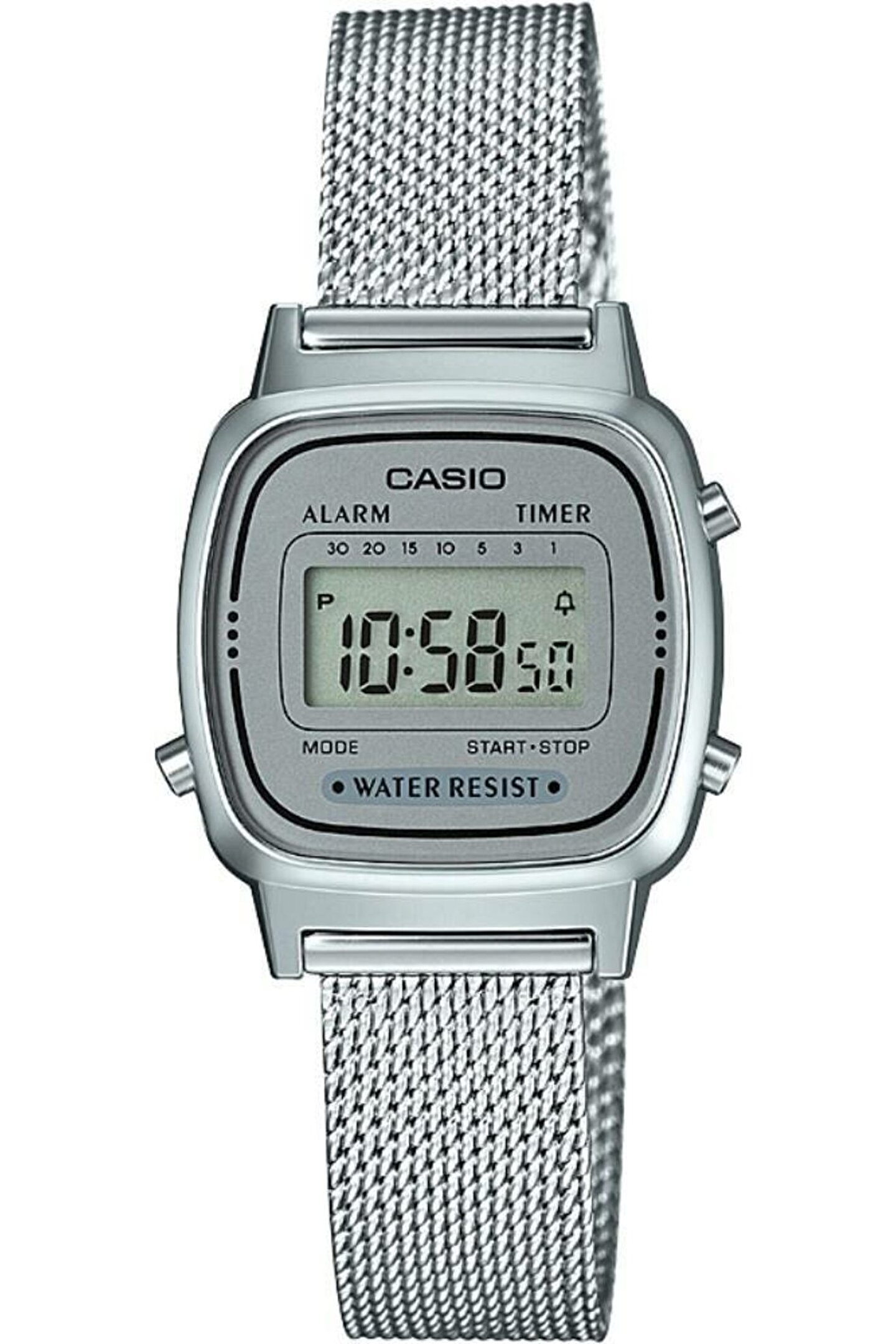 1988’de piyasaya çıkan Casio LA670, minimalist tasarımı ve işlevsel yapısıyla zarif ve kompakt bir saat arayanlar için zamansız bir ikon olarak öne çıkar; temiz ve sade çizgileri sayesinde iş hayatından günlük kullanıma zahmetsizce uyum sağlarken, zamanla sadece bir saat değil kişisel stilin tamamlayıcı bir parçasına dönüşmüştür.; Tek parçalı bağlantılardan oluşan parlak paslanmaz çelik kordonu, ayarlanabilir tokasıyla bileğe kolayca uyum sağlar ve sade ama şık bir görünüm sunar.; İnce kasa yapısı ve metal bileziğiyle yaklaşık 30 gramlık hafifliği sayesinde gün boyu neredeyse hissedilmeyen bir konfor sağlar, özellikle zarif bilekler için ideal bir duruş sergiler.; Elde yıkama ve ani yağmurlara karşı suya dayanıklı yapısı, günlük kullanımda ekstra pratiklik kazandırır.; Vintage ruhunu ilk günden bu yana koruyan LA670, 2011 yılında Japonya Tasarım Enstitüsü tarafından verilen Good Design Long Life Design Award ödülünü kazanarak uzun ömürlü tasarım anlayışını kanıtlamıştır ve bugün de özellikle stiline önem veren kullanıcılar arasında retro esintili görünümüyle ilgi görmeye devam eder.; Fonksiyonel özellikleriyle de günlük hayatı kolaylaştıran model; 1, 3, 5, 10, 15, 20 ve 30 dakikalık geri sayım seçenekleri sunan zamanlayıcısı, saniye hassasiyetinde saat, tarih ve gün göstergesi ile alarm fonksiyonunu bir araya getirerek hem şıklığı hem de pratikliği tek bir kompakt formda buluşturur.