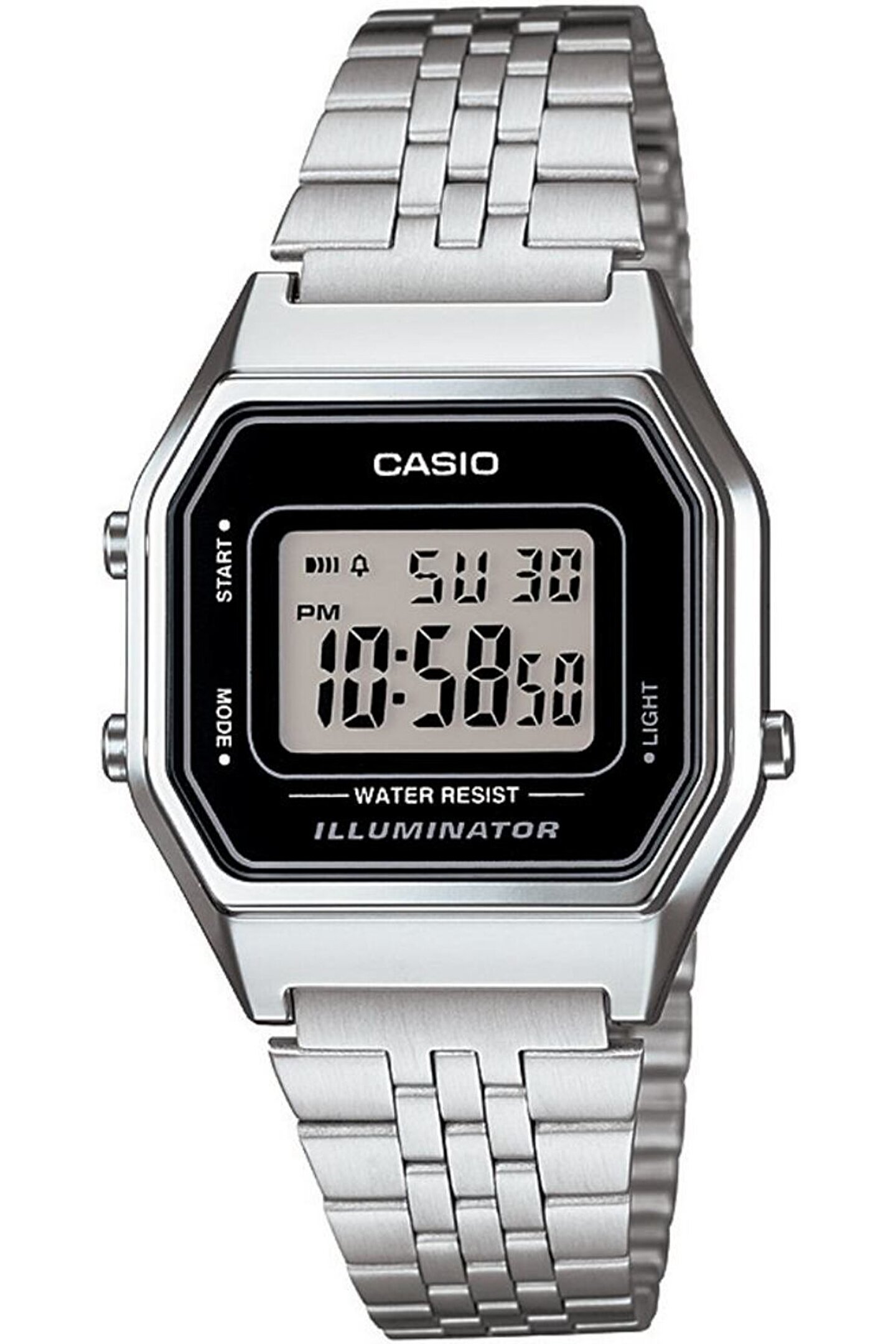 Özellikler • 1/100 saniye hassasiyetli kronometre • Alarm • LED ışığı • Su geçirmez • Paslanmaz çelik kordon • Popüler retro tasarım Teknik Özellikler Silikon Cam Su Geçirmez Gövde / çerçeve malzemesi: Silikon / Krom kaplama Paslanmaz Çelik Kordon Ayarlanabilir Toka LED ışık 1/100 saniye hassasiyetli kronometre Ölçüm kapasitesi: 59'59.99" Ölçüm modları: Geçen süre, bölüm süresi, 1. ve 2. gelenlerin süreleri Günlük alarm Saat sinyali Otomatik takvim (Şubat için 28 gün) 12/24 saat biçimi Normal saat işlemleri: Saat, dakika, saniye, pm, tarih, gün Hassasiyet: ±30 saniye/ay Yaklaşık pil ömrü: CR1616 ile 5 yıl Kılıf boyutu: 33,5 × 28,6 × 8,6 mm Toplam ağırlık: 36 g LED: Koyu Kahverengi