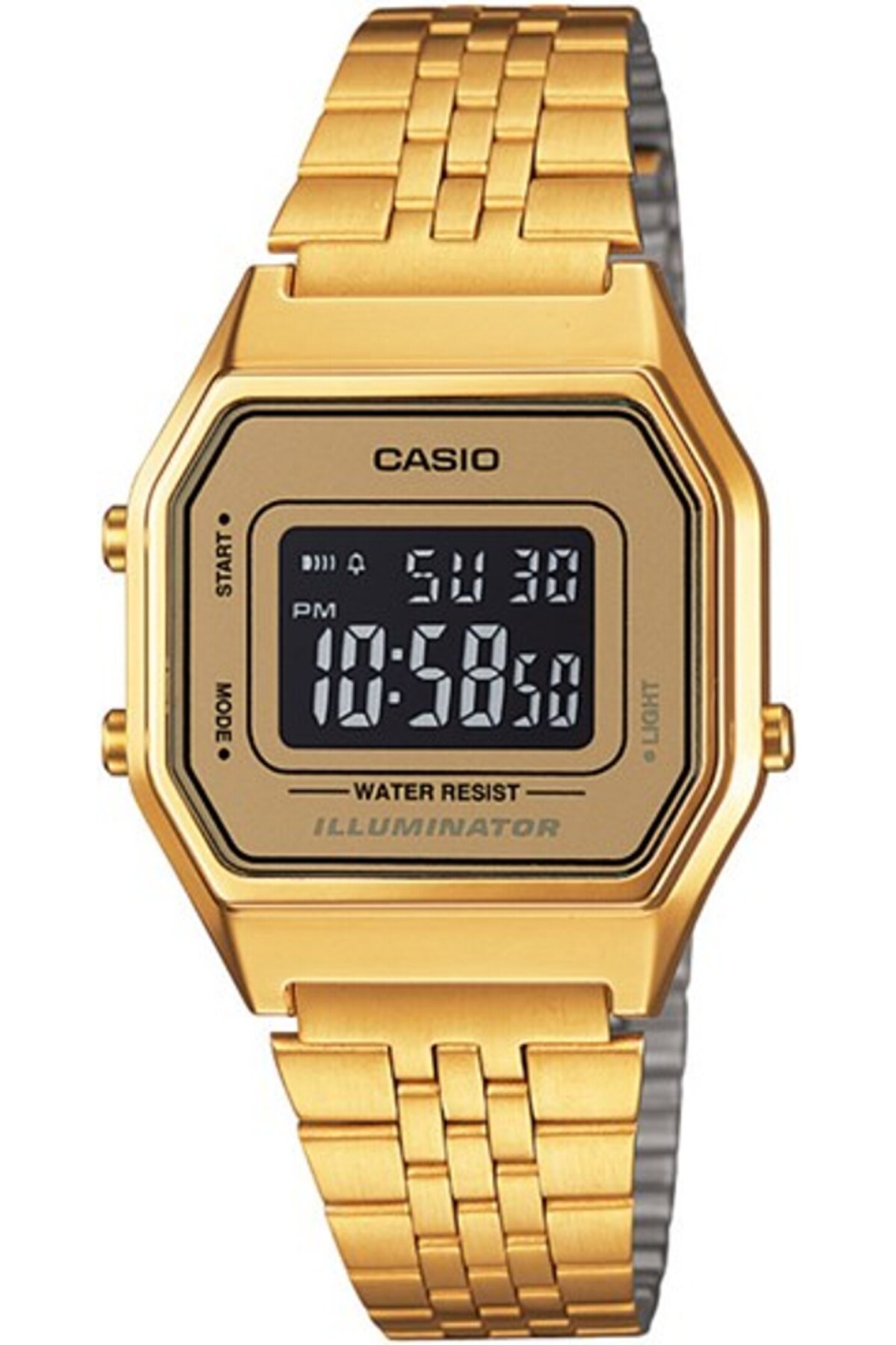 Alarm:Var Ekran Tipi:Dijital Kadran Rengi:Siyah Kadran Şekli:Köşeli Kasa Materyali:Metal Kasa Rengi:Altın Kordon Materyali:Çelik Kordon Rengi:Altın Kronometre:Var Marka:Casio Mekanizma:Digital Takvim:Var Cam Materyal:Organik Su Geçirmezlik:1 ATM Çap (MM):28