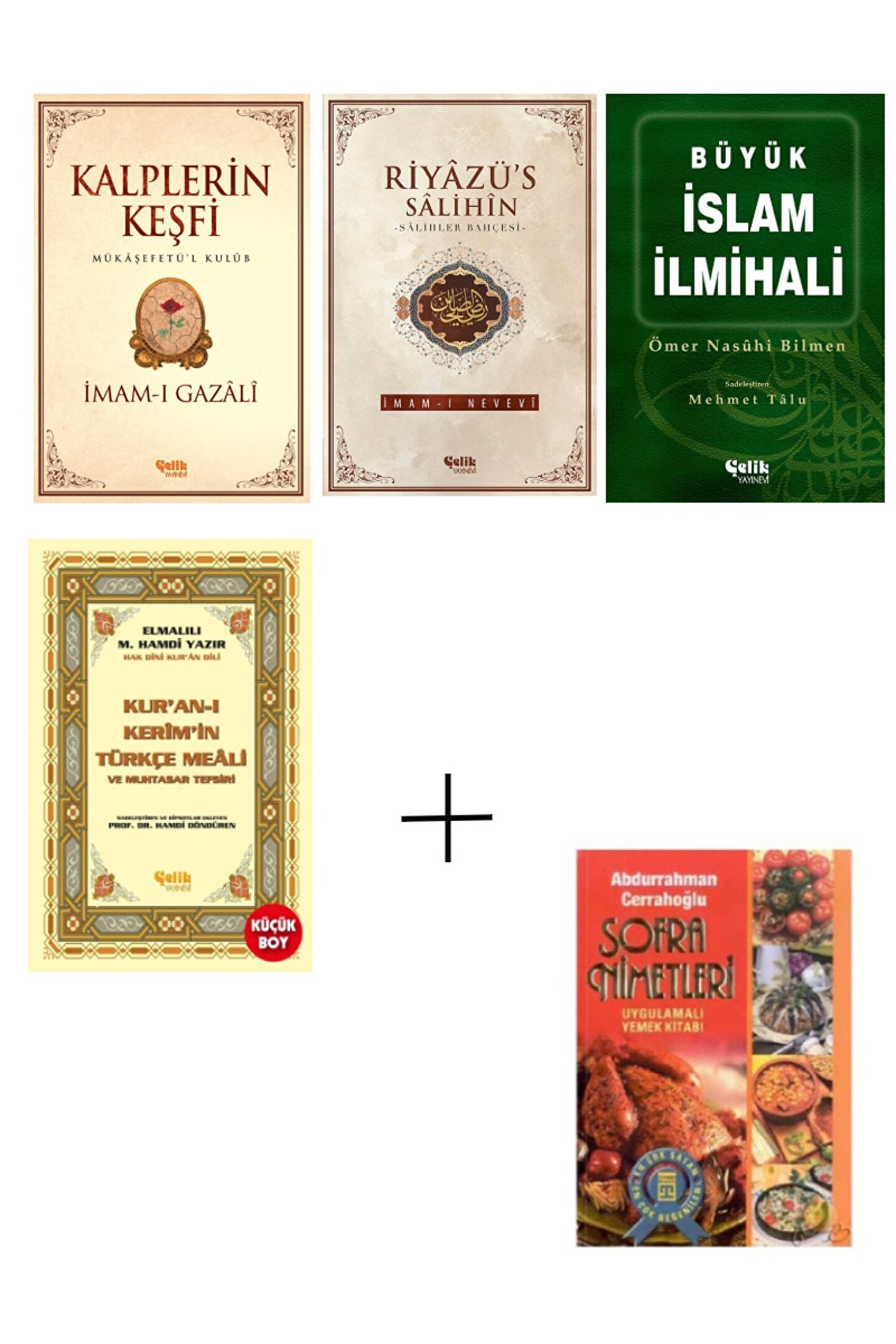 Kalplerin Keşfi ( Sayfa Sayısı: 582 / Ebat: 15x22cm / Karton Kapak) Büyük İslam İlmihali ( Sayfa Sayısı: 612 / Ebat: 15x22cm / Karton Kapak) Riyazü's Salihin ( Sayfa Sayısı: 552 / Ebat: 15x22cm / Karton Kapak) Kur'an; ı Kerim'in Yüce Meali Elmalılı Küçük Boy ( Sayfa Sayısı: 552 / Ebat: 14x20cm / Sert Kapak; Şamua Kağıt) Sofra Nimetleri ( Sayfa Sayısı: 541 / Ebat: 15x22cm / Karton Kapak);