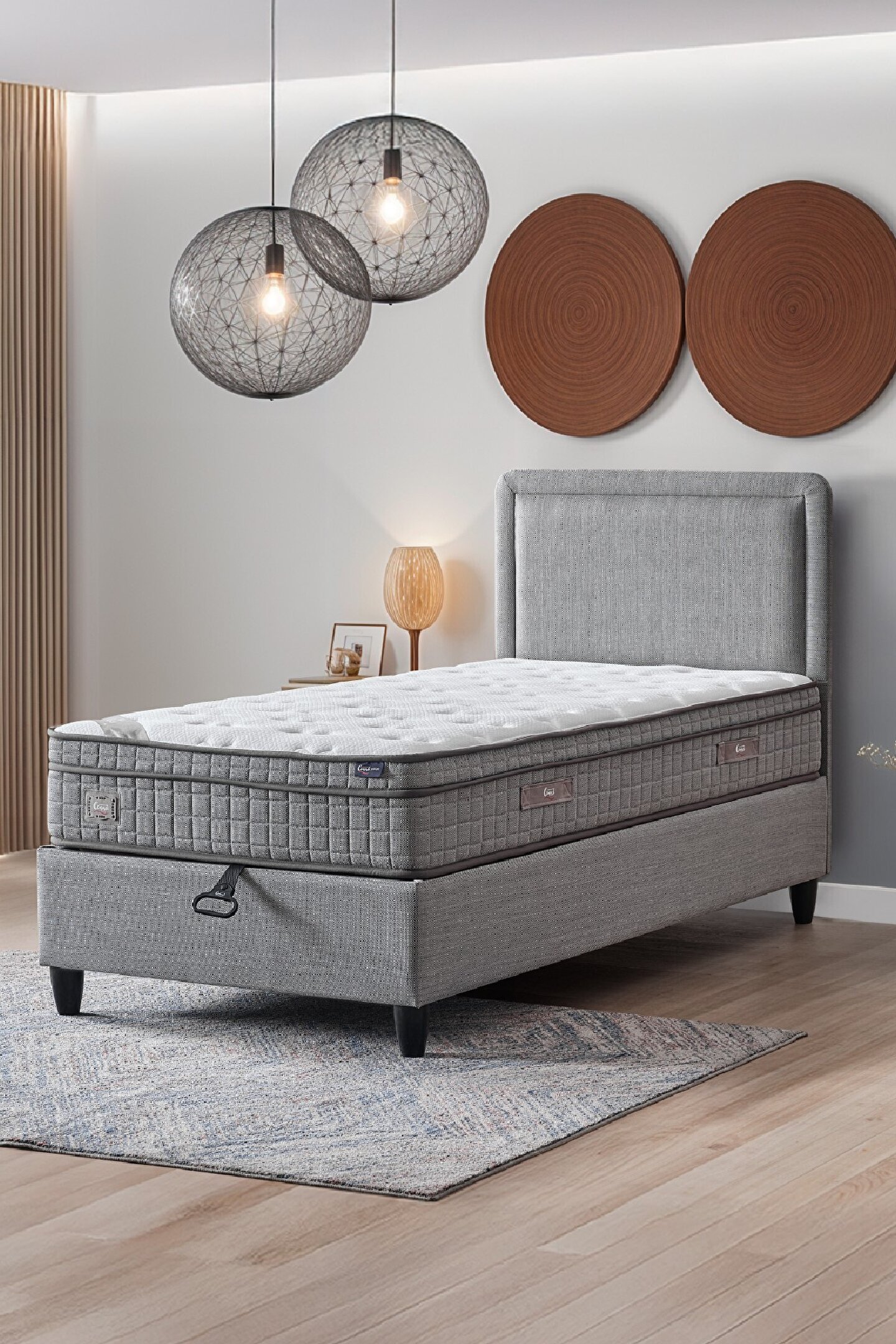 CENNET YATAK Melisa Tek Kişilik Sandıklı Baza + Full Ortopedik Antibakteriyel Visco Yatak + Başlık 3 lü Set