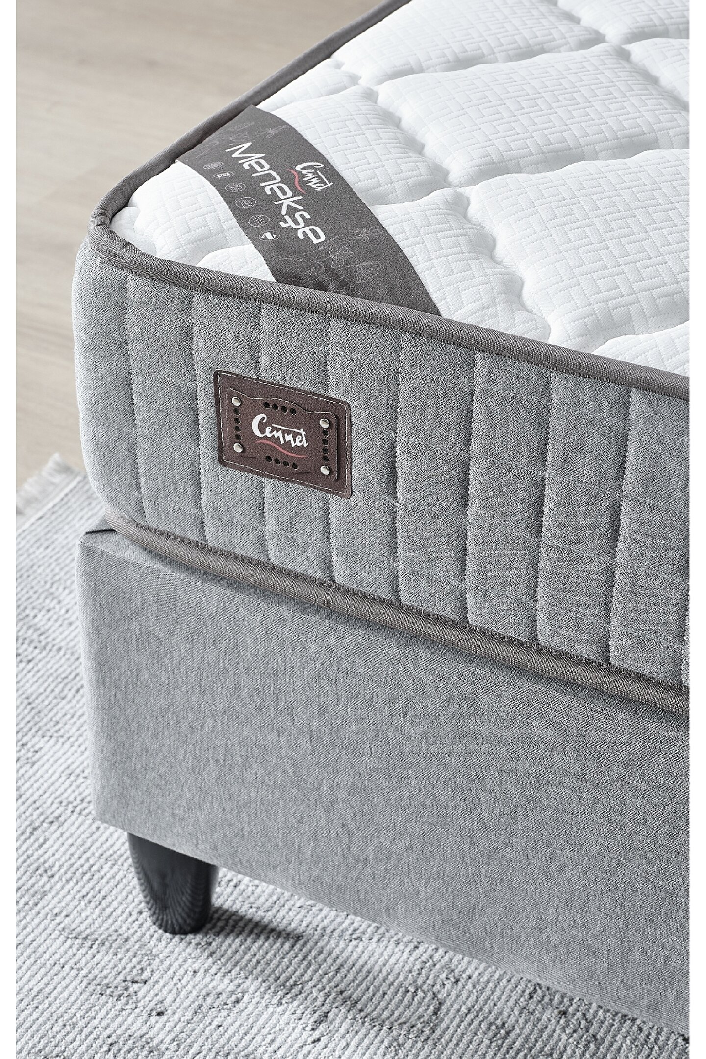 Çift Kişilik Menekşe Başlık & Baza Takımı & Yatak 3 lü Set Menekşe Başlık Özellikleri Kumaş ve Konfor Kumaş Türü: Keten kumaş Özellik: Sünger dolgulu ve kolay silinebilir yapı Ölçüler Yükseklik (Boy): 101 cm Derinlik: 7 cm Menekşe Baza Özellikleri Kumaş ve Malzeme Kumaş Türü: Nefes alabilen keten kumaş Çevresi: Sünger dolgulu, kolay silinebilir yüzey Kapak Kalınlığı: 20x40 mm (TR standartlarında en kalın ölçü) Kapak Üstü : Kaydırmaz Tela Kullanılmıştır Et Kalınlığı: 1 mm Gövde Ölçüsü: 20x30x0.80 mm İskelet: Statik fırınlı boya, çizilmeye karşı ekstra dayanıklı ve markaya özel renkte Teknik Detaylar Baza Tipi: Sandıklı baza Depolama Alanı: 23 cm iç yükseklik Kulp Tipi: Kemer model kumaş kulp Ayak Yüksekliği: 12 cm (robot süpürge uyumlu) Gövde Mekanizması: Metal iskelet + yonga levha Güvenlik ve Dayanıklılık Emniyet: Yüksek güvenlikli emniyet kilidi Kapakta: Anti-Sleep özellikli özel tela Garanti: 2 yıl Menekşe Yatak Özellikleri Yay Teknolojisi Yay Tipi: Omurga destekli akıllı yay sistemi Avantaj: Sessiz çalışma ve kişisel konfor alanı sunar Destek Katmanı Sünger: 24 DNS yüksek yoğunluklu destek süngeri Sertlik: Orta sert Kumaş ve Kaplama Kaplama: Hava dolaşımını artıran antibakteriyel örme kumaş Yatak Kalınlığı Yükseklik: 25 cm ergonomik yükseklik Ekstra Özellikler Kullanım: Tercihe göre çift taraflı kullanım imkanı Temizlik: Temizlenebilir Dış yüzey ile kolay bakım Paketleme : Roll Pack şeklinde gönderilmektedir.; Yatağın tam formuna gelmesi 48 - 72 saat arasındadır Nakliye bina önü değil, kapı teslimidir.