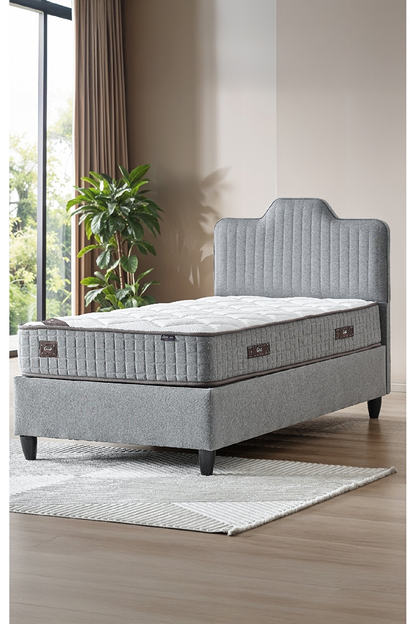 CENNET YATAK Menekşe Tek Kişilik Sandıklı Baza ve Dekoratif Başlık 2’li Set