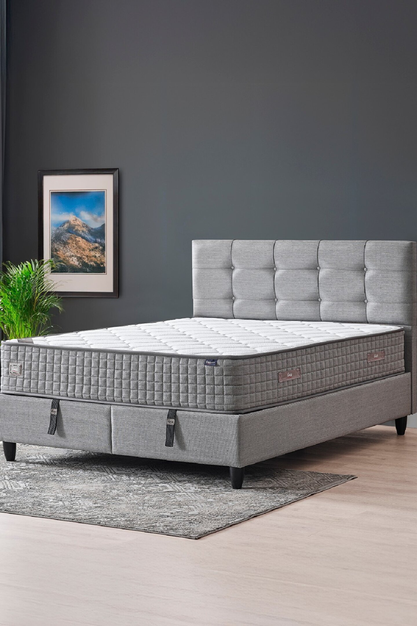 CENNET YATAK Mimoza Modeli Çift Kişilik Full Ortopedik Yataklı Sandıklı Baza ve Başlık Takımı 3 lü Set