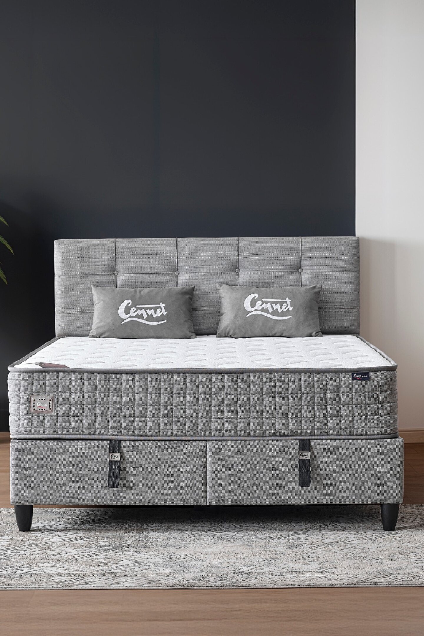 Çift Kişilik Mimoza Başlık & Baza Takımı & Yatak 3 lü Set Mimoza Başlık Özellikleri Kumaş ve Konfor Kumaş Türü: Keten kumaş Özellik: Sünger dolgulu ve kolay silinebilir yapı Ölçüler Yükseklik (Boy): 101 cm Derinlik: 7 cm Mimoza Baza Özellikleri Kumaş ve Malzeme Kumaş Türü: Keten kumaş Çevresi: Sünger dolgulu, kolay silinebilir yüzey Kapak Kalınlığı: 20x40 mm (TR standartlarında en kalın ölçü) Kapak Üstü : Kaydırmaz Tela Kullanılmıştır Et Kalınlığı: 1 mm Gövde Ölçüsü: 20x30x0.80 mm İskelet: Statik fırınlı boya, çizilmeye karşı ekstra dayanıklı ve markaya özel renkte Teknik Detaylar Baza Tipi: Sandıklı baza Depolama Alanı: 23 cm iç yükseklik Kulp Tipi: Kemer model kumaş kulp Ayak Yüksekliği: 12 cm (robot süpürge uyumlu) Gövde Mekanizması: Metal iskelet + yonga levha Güvenlik ve Dayanıklılık Emniyet: Yüksek güvenlikli emniyet kilidi Kapakta: Anti-Sleep özellikli özel tela Garanti: 2 yıl Mimoza Yatak Özellikleri Yay Sistemi Yay Yapısı: Esnek destek sağlayan Duracoil Pocket yay (Torba Yay) teknolojisi Uyum: Çift bölgeli konfor katmanı ile kişiye özel destek Destek Katmanı Konfor Süngeri: 24 DNS yüksek yoğunluklu sünger tabaka Kumaş ve Hijyen Dış Kumaş: Nefes alan, antibaktariyel dayanıklı örme kumaş Yatak Kalınlığı Yükseklik: 30 cm ideal yatak yüksekliği Ekstra Detaylar Özellik: Ters-yüz kullanılabilir yapı Paketleme : Roll Pack şeklinde gönderilmektedir.; Yatağın tam formuna gelmesi 48 - 72 saat arasındadır Nakliye bina önü değil, kapı teslimidir.