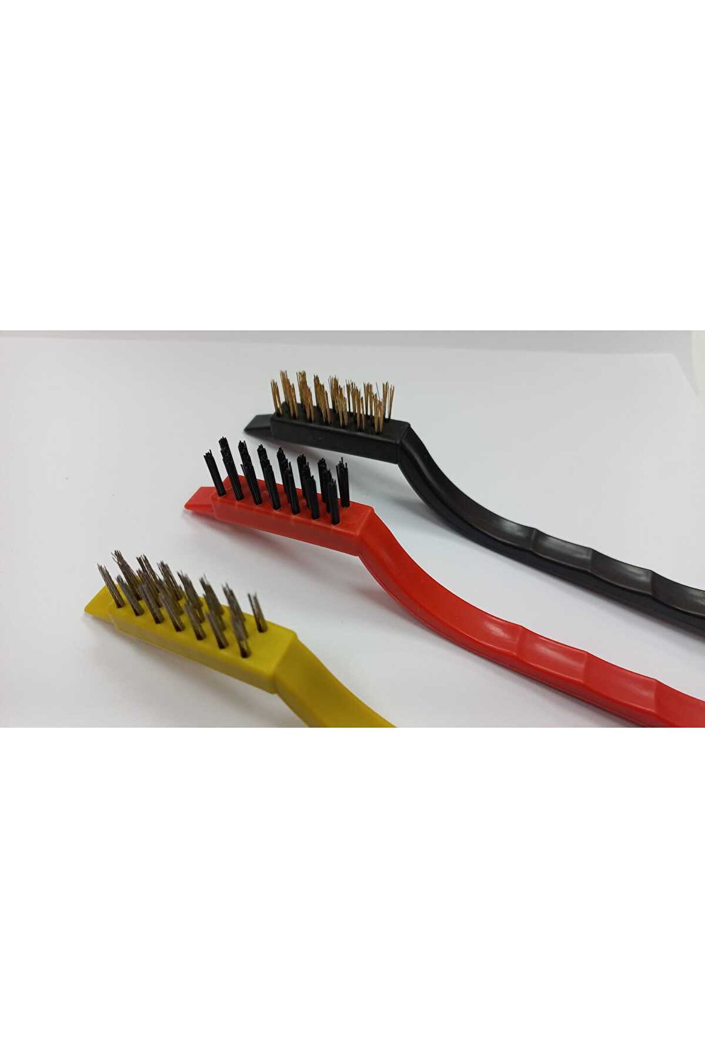 3'lü tel fırça seti pirinç-naylon-çelik fırça ; ürün gönderimi 1 pakette 3adettir ; 1 adet pirinç fırça ; 1 adet naylon fırça ; 1 adet çelik fırça ; ürün ölçüsü saplı 18cm ; fırça ölçüsü 4;