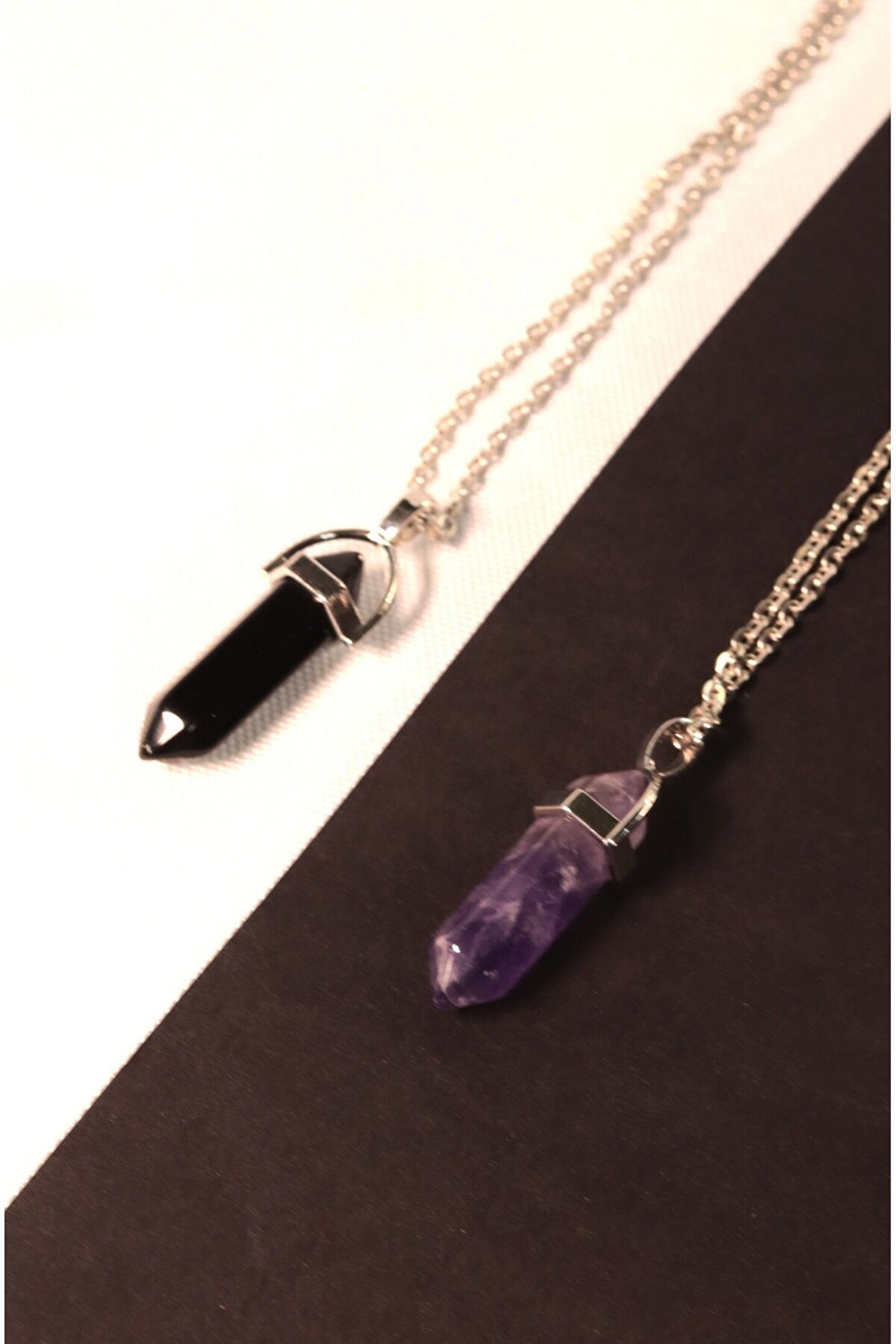 Oniks - Ametist Sevgili Çift Doğaltaş Çivi Kolye
