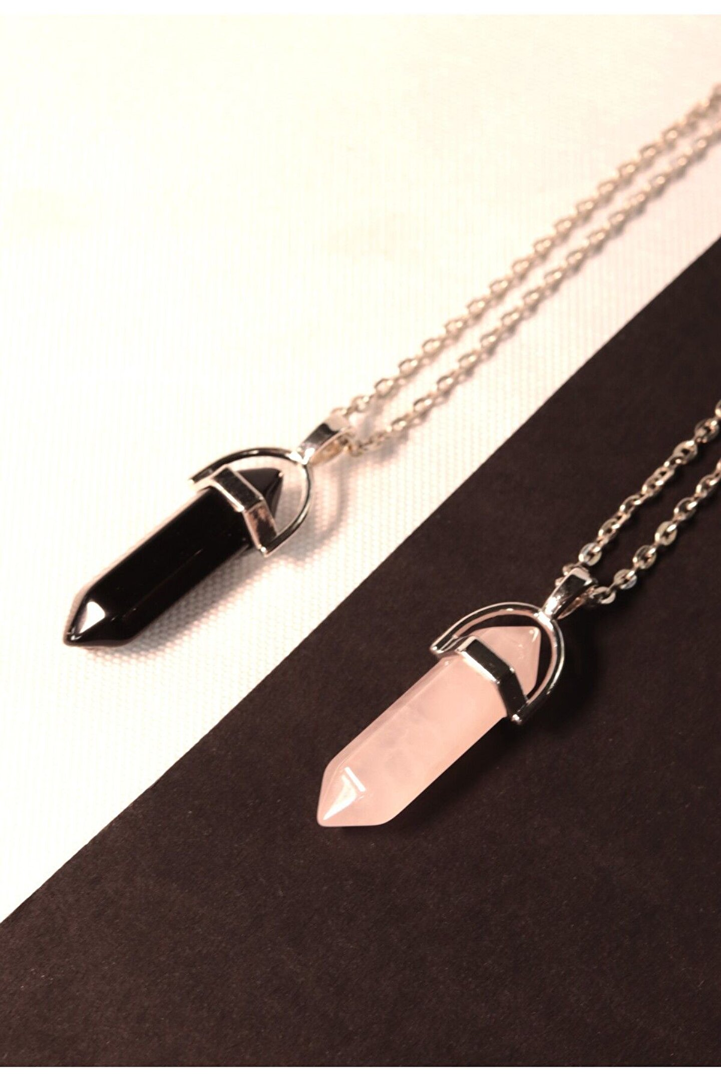 Oniks - Pembe Kuvars Sevgili Çift Doğaltaş Çivi Kolye