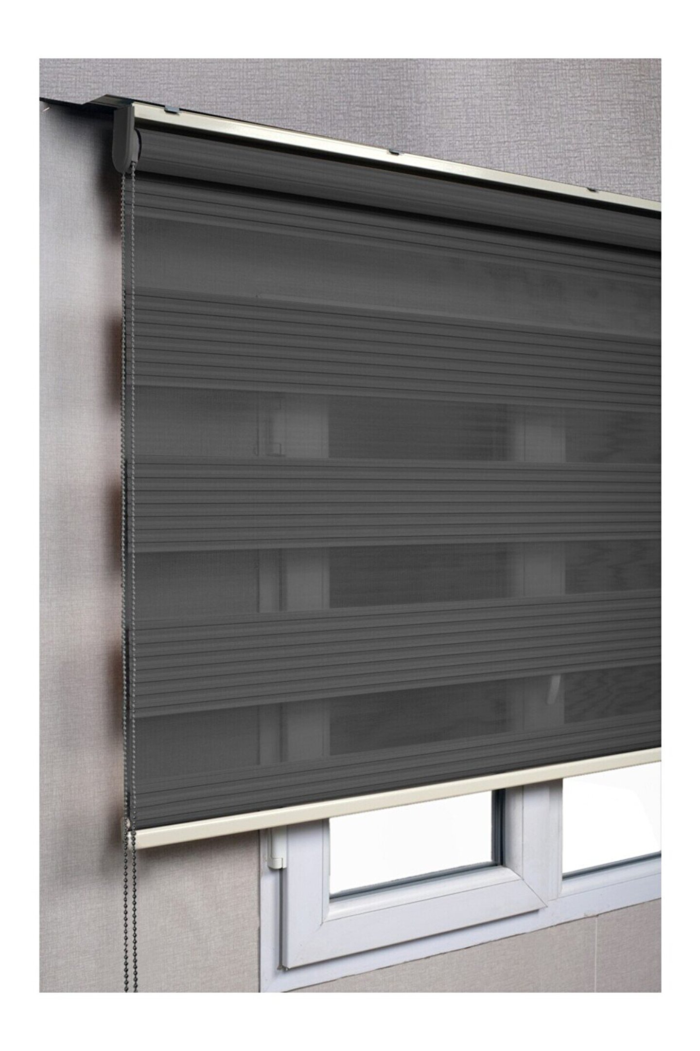CEYHAN STORE Zebra Perde Antrasit Gri Pliseli Dilimsiz