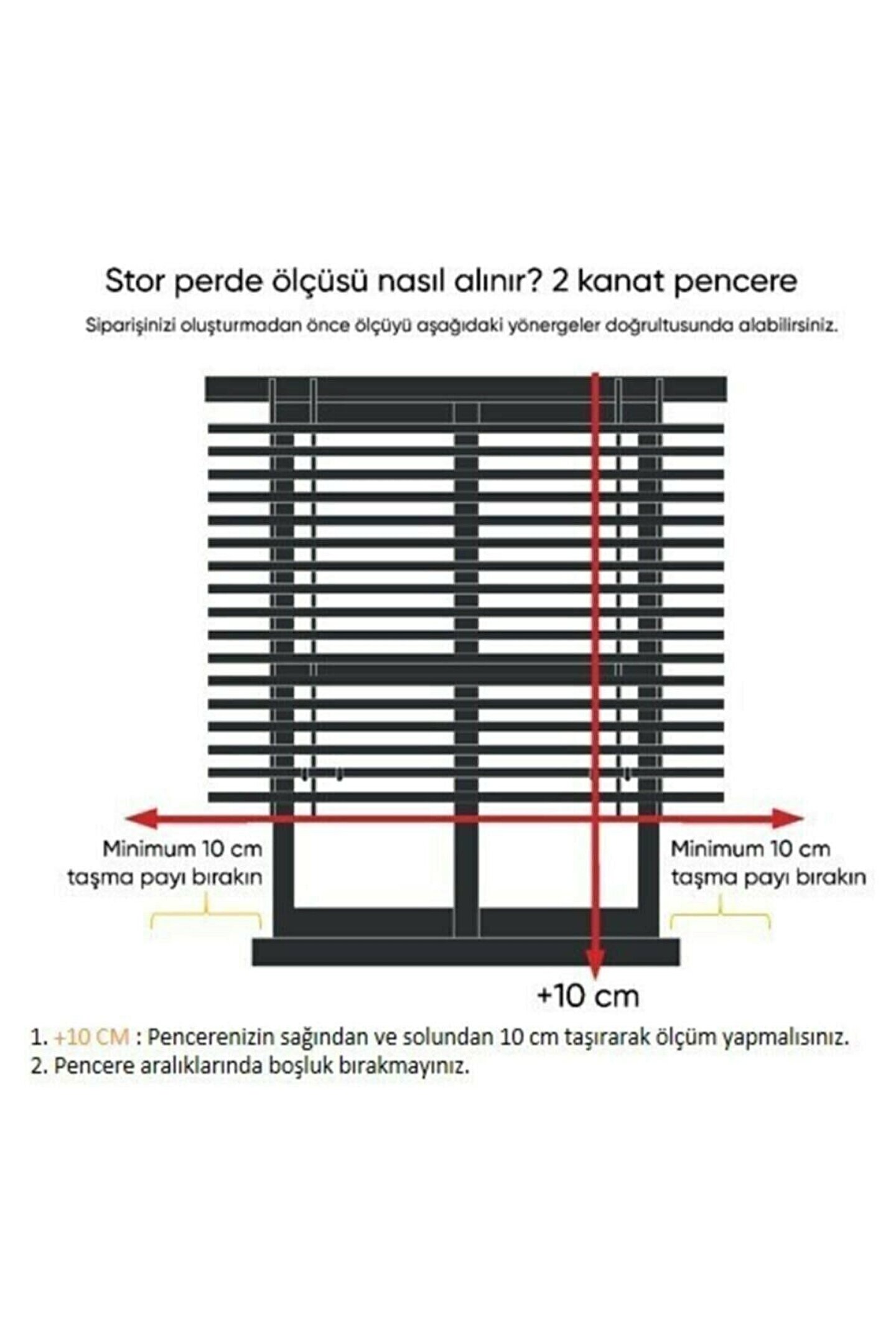 Ürünün kutusundan kolay tavan ve kroniş montaj parçaları çıkmaktadır ; Duvar montajı için L parça yoktur Perde ölçüsü alırken pencere genişliğinden 20cm fazla perde seçebilirsiniz ; Mesela pencereniz 100cm ise 120X200 perdeyi seçiniz ; Takacağınız zebra perde pencerenizin sağ ve solundan 10cm fazla olursa dışarıdan görüntüyü tamamen kapatırsınız ; Seçeceğiniz ölçüler En ve Boy şeklindedir ; Örnek olarak 120X200 seçtiğinizde 120cm eninde, 200cm yüksekliğinde zebra perde gönderilmektedir ; 120cm eni kasa genişliğidir ; Perde kasadan 4cm daha kısadır ; Yani 120cm lik perde aldığınızda 116cm genişliğinde perde almış olursunuz ; Pencereniz 100cm genişliğinde ise kenarlardan 8'er cm civarında perde duvarı kapatır ; Perde tam açıldığında 2mt yüksekliğinde camı kapatmaktadır ; Camın yüksekliği daha az ise de camı kapatacak kadar açmanız yeterlidir ; Örnek ölçüm aşağıdaki şekilde olmalıdır ; Zebra perdelerimizin alt etek dilimi yüksekliği 25cm dir ; Aldığınız üründe alt etek dilimi varsa ölçüye bunu da dahil ediniz ; Eğer kanatlı açılır pencereye takacaksanız perdeyi tamamen kaldırdığınızda alt etek dilimi kapanmayacağı için pencerenizin açılmasına engel olabilir veya pencere açıldığında alt etek dilimine zarar verebilir ; Lütfen buna dikkat ediniz ; Ürünlerimiz size gönderilmeden önce üretim aşamasında tüm testlerden geçirilmektedir ; Sorunsuz ve eksiksiz olarak gönderilmektedir ; Zebra perde, duvara ve kornişe montaj aparatlları kutudan çıkmaktadır ; Tüm zebra perdelerimizde kullanılan malzeme ve kumaşlar OEKO-TEX® Standard 100 sertifikasına sahiptir ; Uzun yıllar dayanan kalın ve kaliteli kumaştan üretilmiştir ; Hiçbir zararlı veya kanserojen kimyasal içermez ; Koku ve leke tutmaz ; Kolay silinir ve temizlenir ; Nemli ve yumuşak bir bezle kolayca silebilirsiniz ; Lütfen makinada yıkamayınız ve kurutma makinasında kurutmayınız zebra perde ile evinizin ve odanızın şıklığı ortaya çıkacaktır ; Uzun yıllar kullanabilirsiniz ; Mikro petekli kumaş dokusu yıllarca bozulmadan ve özelliğini yütürmeden odanızı süsler ; Hem güneşlik hem tül perde özelliği ile tek perde ile bir görüntü oluşturur
