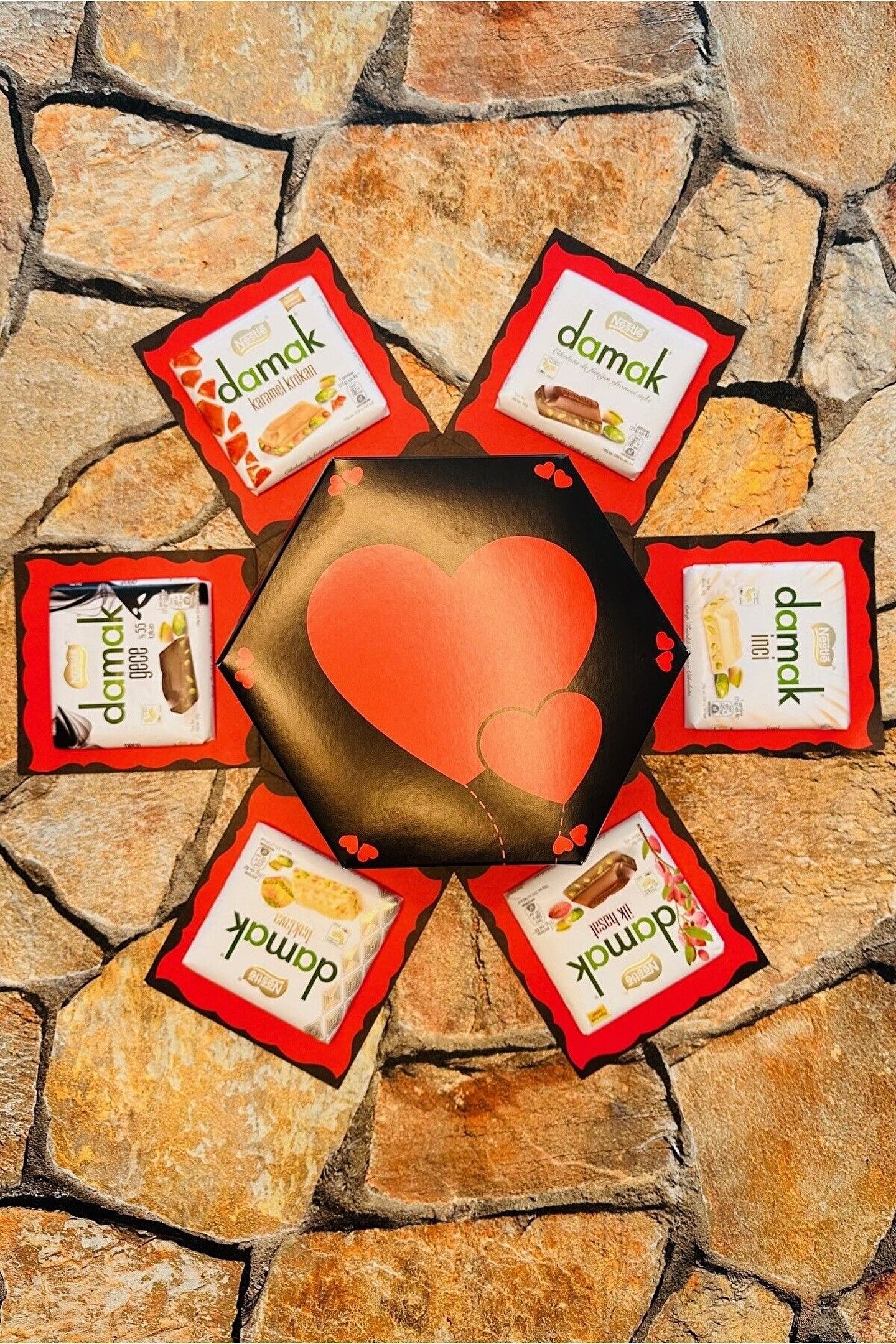 KUTU İÇERİSİNDE 40 ADET ÇİKOLATA VE ORTASINDA PELUŞ OYUNCAK HEDİYEMİZ BULUNMAKTADIR. ; ÇİKOLATALARIN HEPSİ MARKALI ÇİKOLATALAR OLUP RESİMDE GÖRÜNDÜĞÜ GİBİ GELMEKTEDİR. ; HEDİYE OLARAK GÖNDERDİĞİMİZ PELUŞ OYUNCAK DEĞİŞİKLİK GÖSTEREBİLMEKTEDİR. ; KUTUNUN KAPALI HALİ 22*25*14 CM ALTIGEN ŞEKLİNDEDİR.;