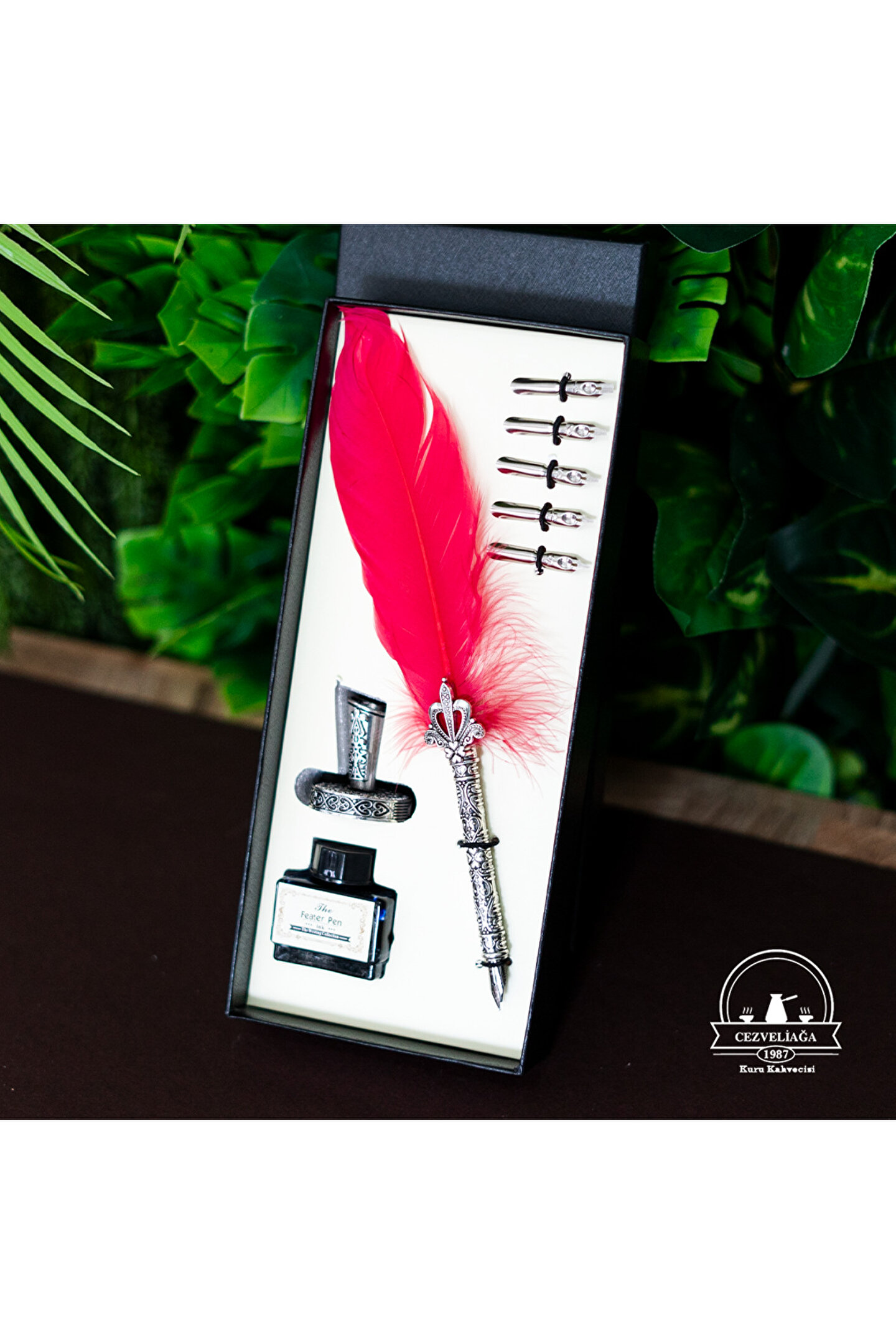 Masa Üstü Tüylü Divit Kalem Ve Mürekkep Seti ; Ürün Özellikleri: Divit kalem ucu metal tasarımlıdır , uç kısmı tüylüdür . ; Set içerisinde divit kalem mürekkebi yer almaktadır. ; Set içerisinde 5 farklı yazış başlğı vardır. ; Set içerisinde divit kalem için masa üstü tutacağı aparatı yer almaktadır. ; Divit kalem seti özel tasarımlı hediyelik kutusunda gönderilmektedir. ; Paket İçeriği: 1 adet tüylü divit kalem 1 şişe divit mürekkebi 1 adet tasarım kutu ;