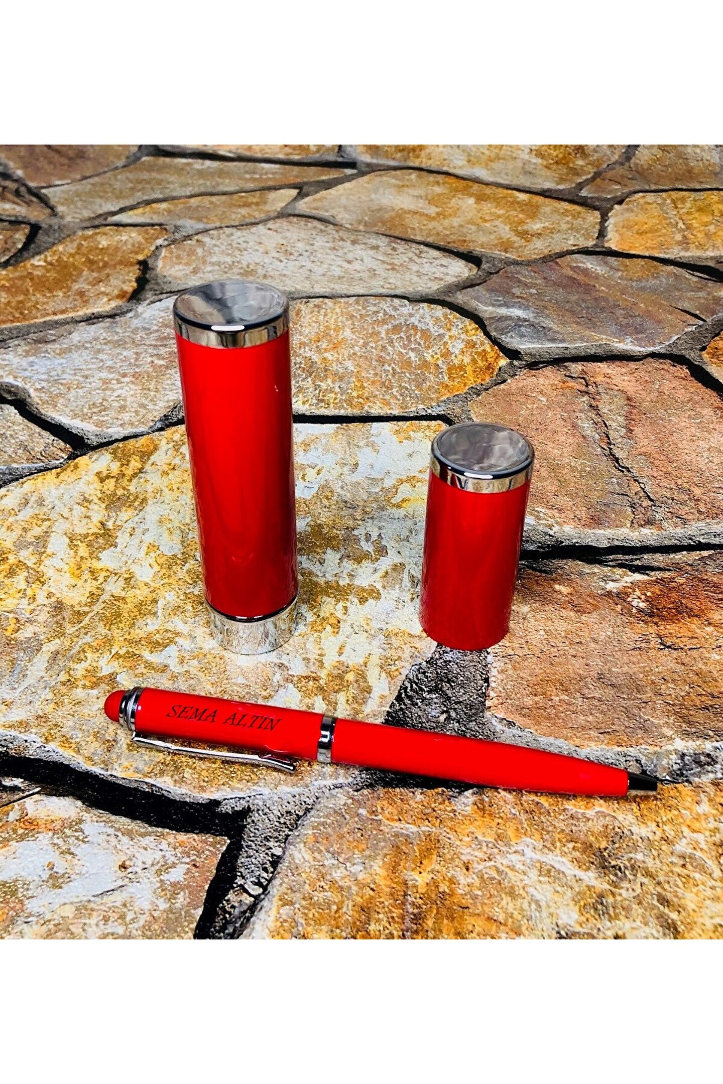 ÖZEL SİLİNDİR KUTUSUNDA KIRMIZI KALEM