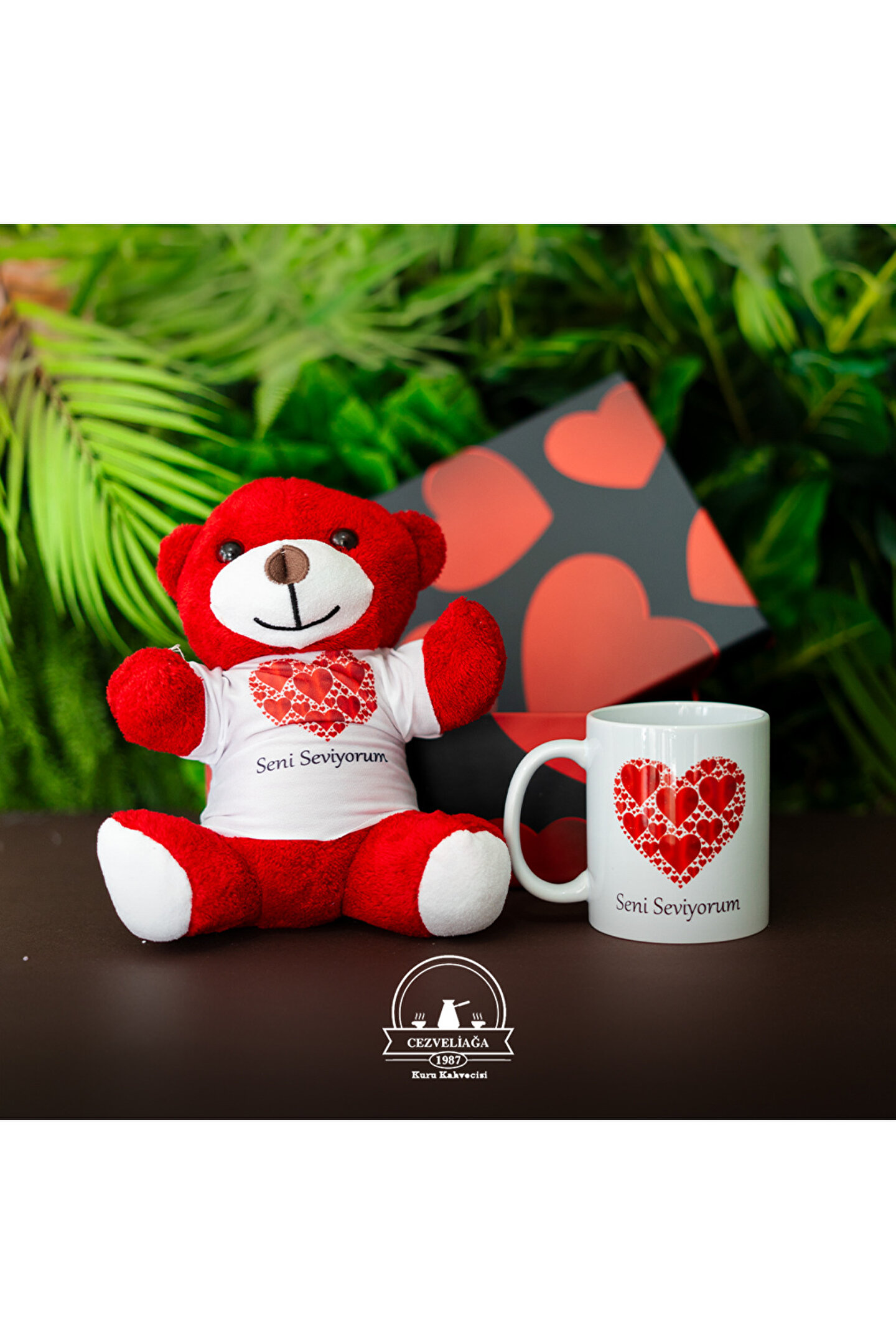 CEZVELİAĞA KURUKAHVECİSİ SEVGİLİLER GÜNÜ SENİ SEVİYORUM KUPA AYICIK KUTU