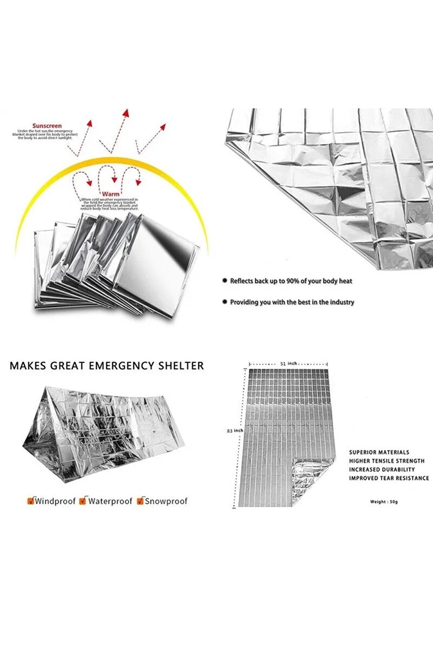 Choice Açık Hava Kampı için Termal Battaniye Alüminyum Kurtarma Perdesi Askeri Stil