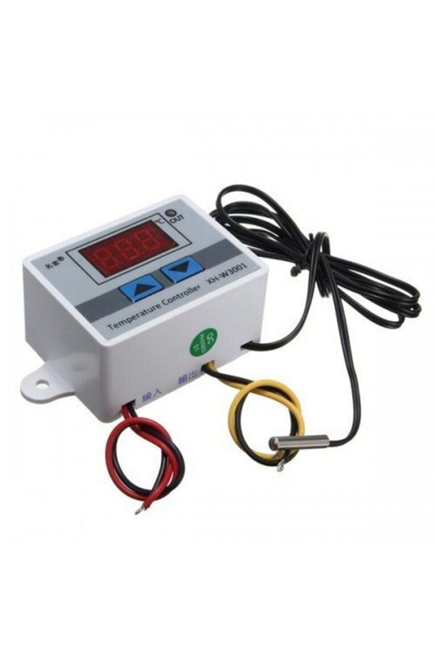 Ürün resimlerde görüldüğü gibi yeşil kart XH-W3001 220v olarak gönderilir.; Dijital Termostat Kuluçka Pet Akvaryum Isıtıcı Soğutucu Kontrol Cihazı Cihaz 220V elektrik ile çalışır.; ; Bu sebeple bağlantıları yaparken ve ilk çalışma sırasında son derece dikkatli olmalısınız.; ; Cihazın bağlantılarını aşağıdaki resimdeki gibi yapabilirsiniz.; ; Sol taraftaki kablolar cihazın besleme kablolarıdır.; ; 220V pirize bağlamalısınız.; ; Ortadaki kablo uçları 220V ısıtıcı için, çıkış uçlarıdır.; ; Bu uçlardada 220V bulunmaktadır.; ; Bu kabloların da cihaz enerjili halde iken, çıplak elle temas edilmemesi gerekmektedir.; ; En sağda ise ntc sıcaklık sensör probu bulunmaktadır.; ; Cihazın kullanımı ve ayarları basit olduğundan cihazı size kargolarken cihazı test etmeden yollıyacağız.; ; Size gelen cihazın ayarlarını aşağıdaki resim altındaki açıklamaları okuyarak kolayca yapabilirsiniz.; ; Cihaz kullanımı ve ayarlarının yapılması: Cihazın 1 adet göstergesi bulunmaktadır.; ; Bu göstergede ortam sıcaklığı gösterilmektedir.; ; Cihazda 2 adet buton bulunmaktadır.; ; Bu butonlar ile cihazın ayarları yapılmakdır.; ; Cihazda temel olarak 2 adet sıcaklık set edilebilmektedir.; ; Bu değerler sağ ve sol butonlara basılarak görülmektedir.; ; Sol ve sağ butonlara bağlı bu değerlerinin büyüklüklerine göre cihaz ısıtıcı veya soğutucu moduna otomatik olarak geçmektedir.; ; Sol butona bağlı sıcaklık ayarı büyük ise cihaz soğutucu modunda çalışır.; ; ( Sol: 30 Sağ: 20 Soğutucu modu ) Sağ butona bağlı sıcaklık ayarı büyük ise cihaz ısıtıcı modunda çalışır.; ; ( Sol: 20 Sağ: 30 Isıtıcı modu ) Kısa tuş basmaları ile bu sıcaklık değerlerini görebilirsiniz.; ; Butonlara uzun süreli basarsanız ilgili değerin ayarlarını değiştirebilirsiniz.; ; Uzun süreli basma sonrasında butonlar yukarı ve aşağı işlevi görmeye başlar.; ; İlgili sıcaklığı yukarı ve aşağı butonlara basarak ayarladıktan sonra bir süre beklediğinizda bu değer kayıt olur.; ; Ve cihaz bu değere göre çalışmaya başlayacaktır.; ; Örnek olarak sol butona bağlı değeri 37, sağ butona bağlı değeri 38 dereceye ayarlayalım.; ; Bu durumda cihaz, kuluçka için ideal ayarlarda olacaktır.; ; Ortam sıcaklığı 37 derece altına indiğinde ısıtıcı aktif olur.; ; Ortam ısınmaya başlayacaktır.; ; Sıcaklık 38 derece üstüne çıktığında cihaz ısıtmayı kapatacaktır.; ; Bu durumda ortam sıcaklığı 37-38 derce arasında dolaşacaktır.; ; İlgili ayarları yaptıktan sonra cihazın beslemesini kapatıp açın.; ; Ayarladığınız değerlerin cihazda kayıtlı olduğunu görün.; ; Cihaz ayarlarını sıfırlamak isterseniz, 2 butona aynı anda basılı tutun, bir süre sonra cihaz ayarları sıfırlanacaktır.;