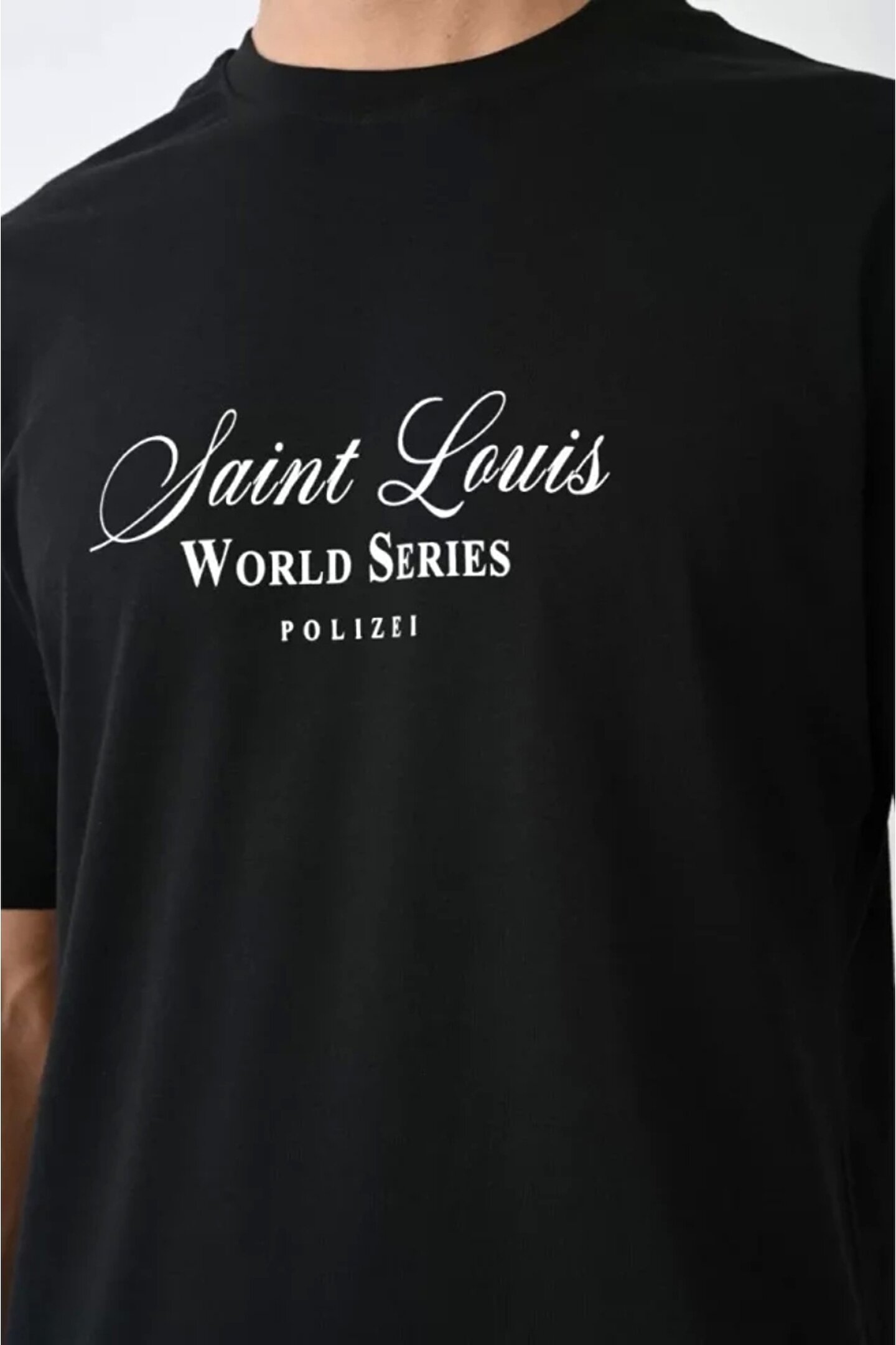 Unisex Bisiklet Yaka Baskılı Oversize T-Shirt - Siyah