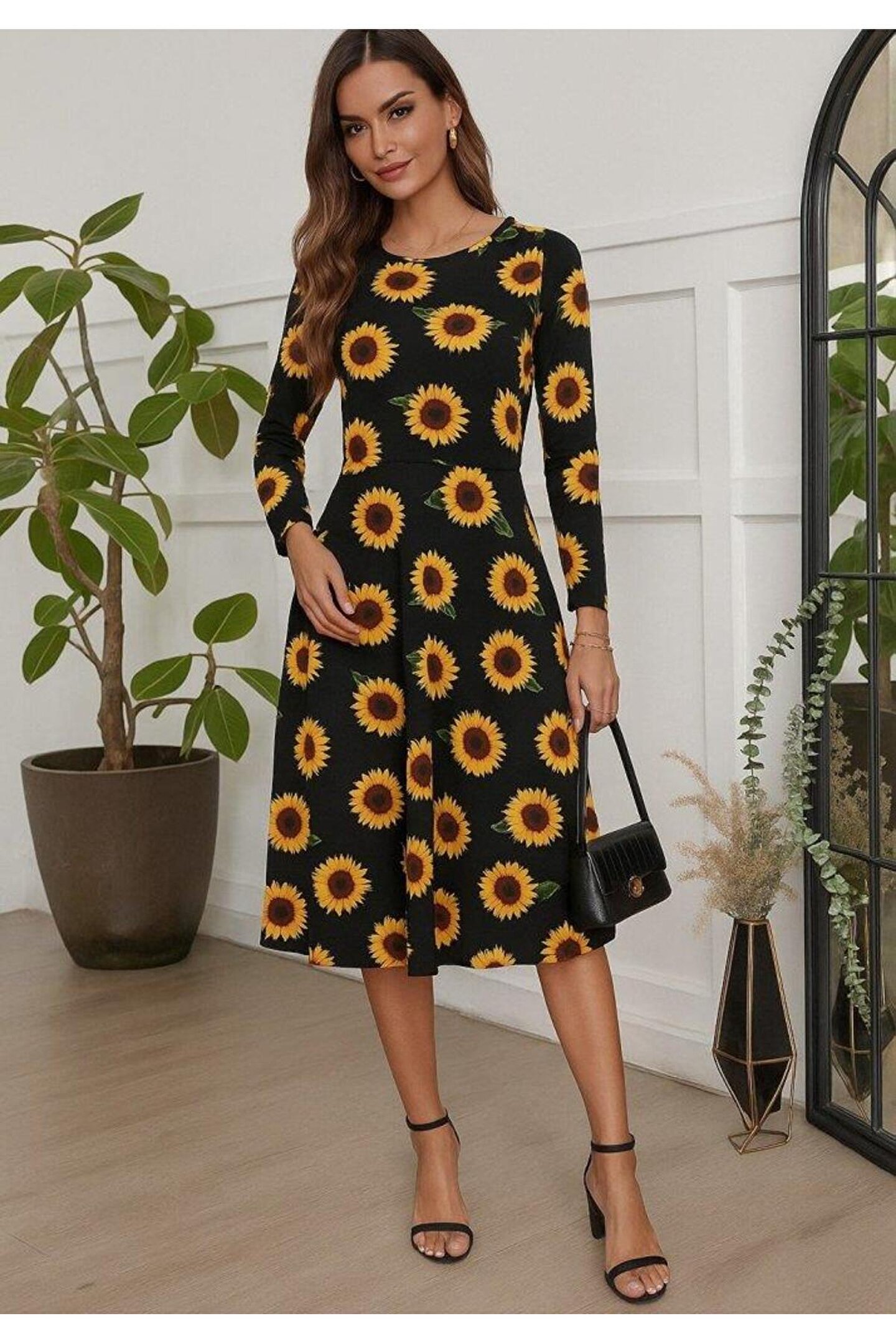 KadınFakir Kol Bisiklet Yaka Midi Mikro Elbise