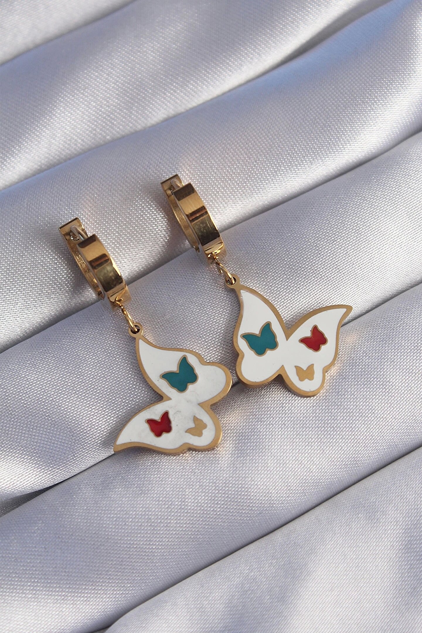 Clariss 316L Çelik Gold Renk Renkli Mineli Kelebek Küpe