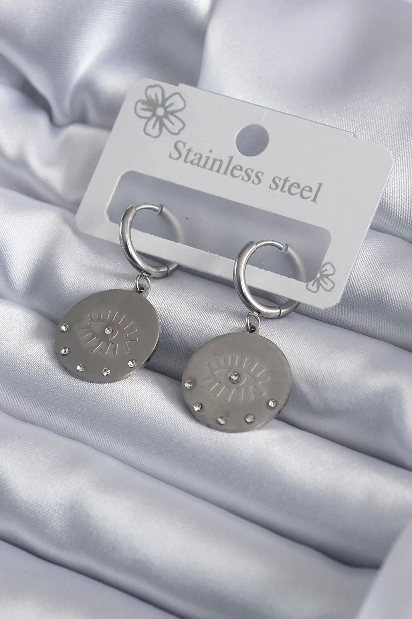 316l Çelik Gümüş Renk Göz Işleme Zirkon Taş Detay Kadın Küpe