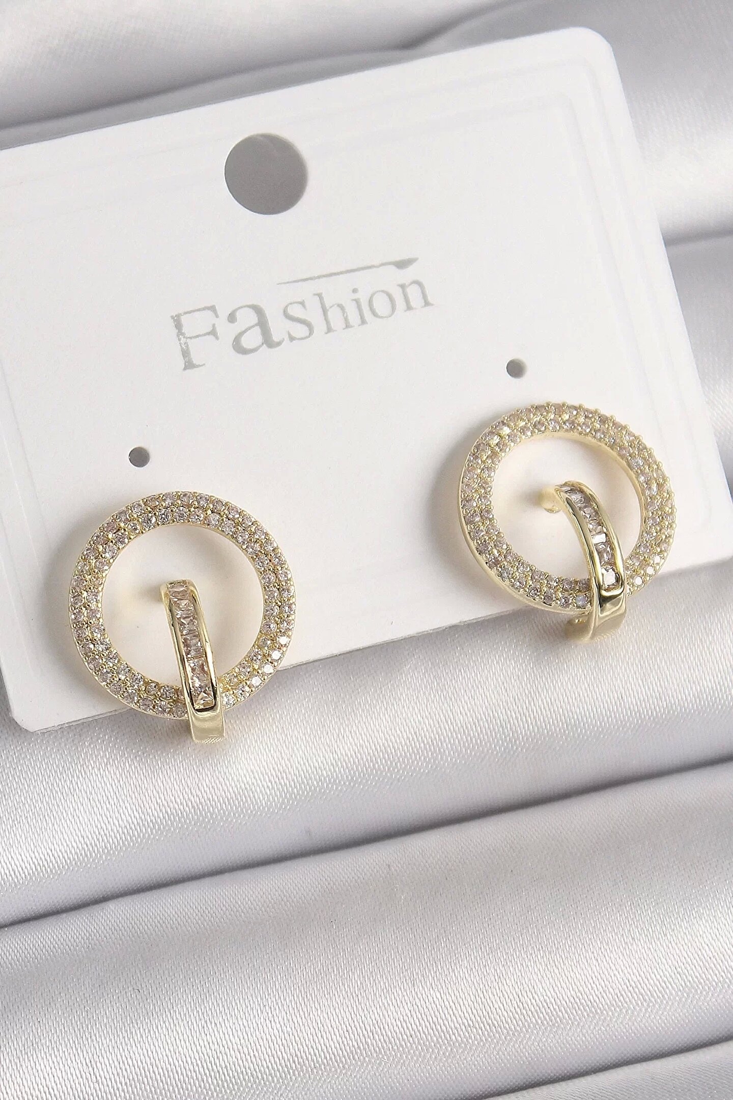 Pirinç Gold Renk Zirkon Taşlı Halka Model Kadın Küpe
