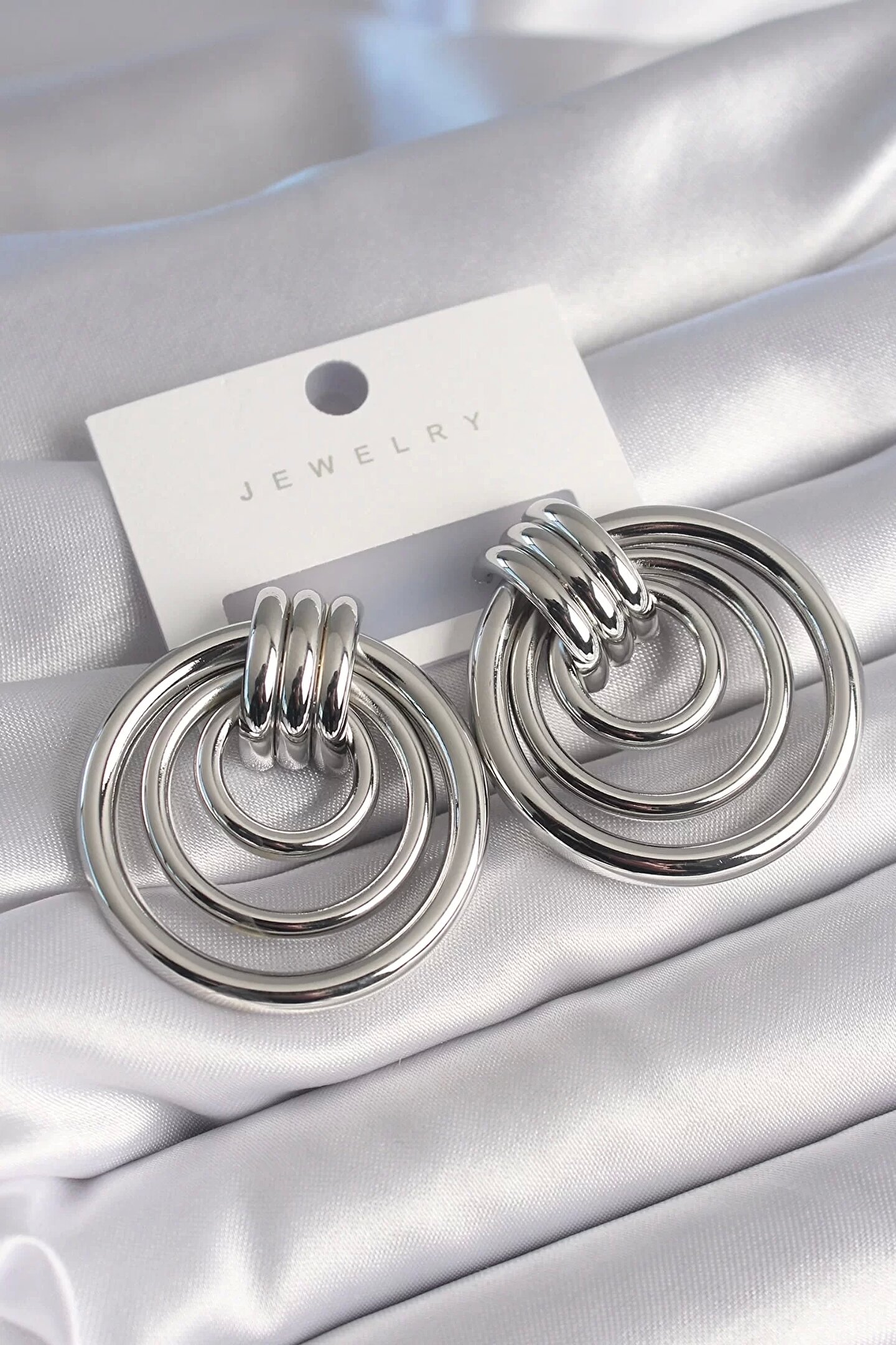 Pirinç Gümüş Renk Halka Model Kadın Küpe