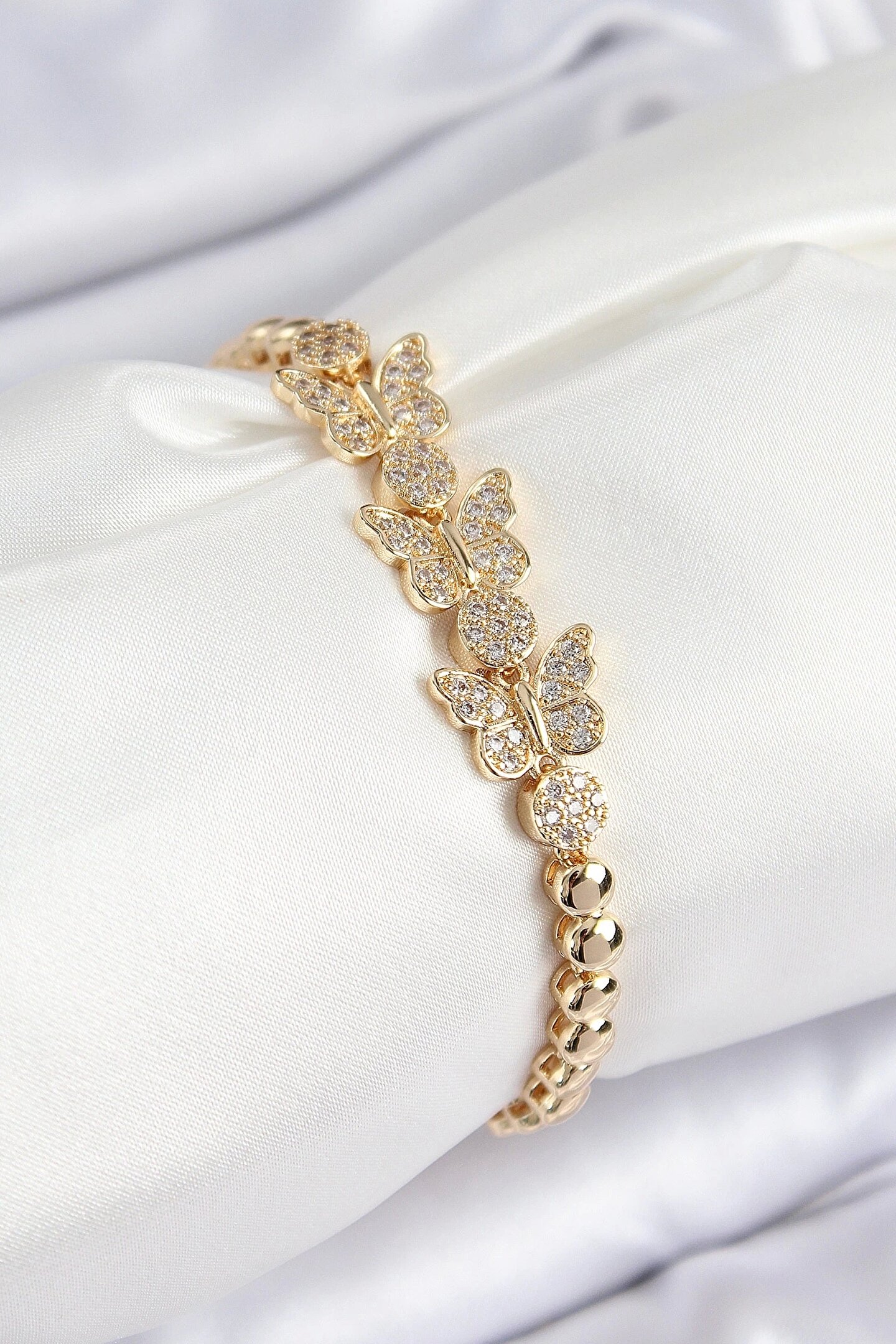 Clariss Pirinç Zirkon Taşlı Kelebek Model Gold Renk Kadın Bileklik