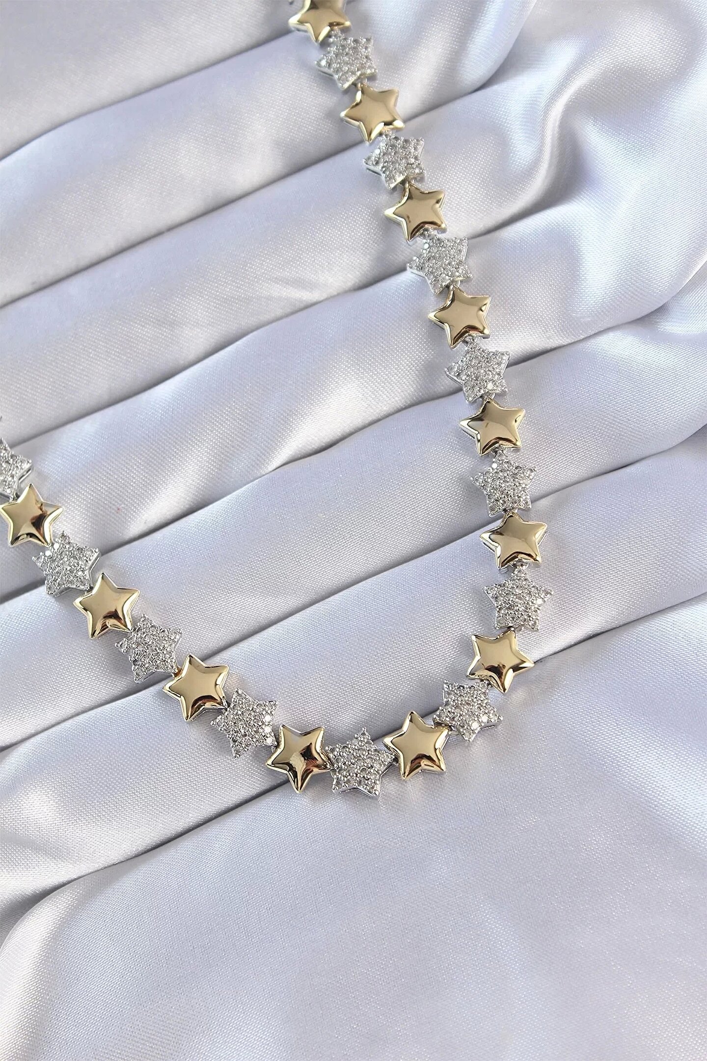 Vip Seri Pirinç Çift Renk Zirkon Taşlı Yıldız Tasarımlı Kolye