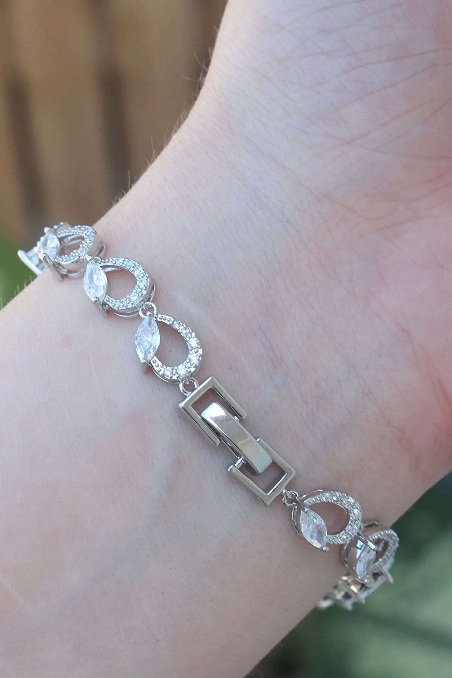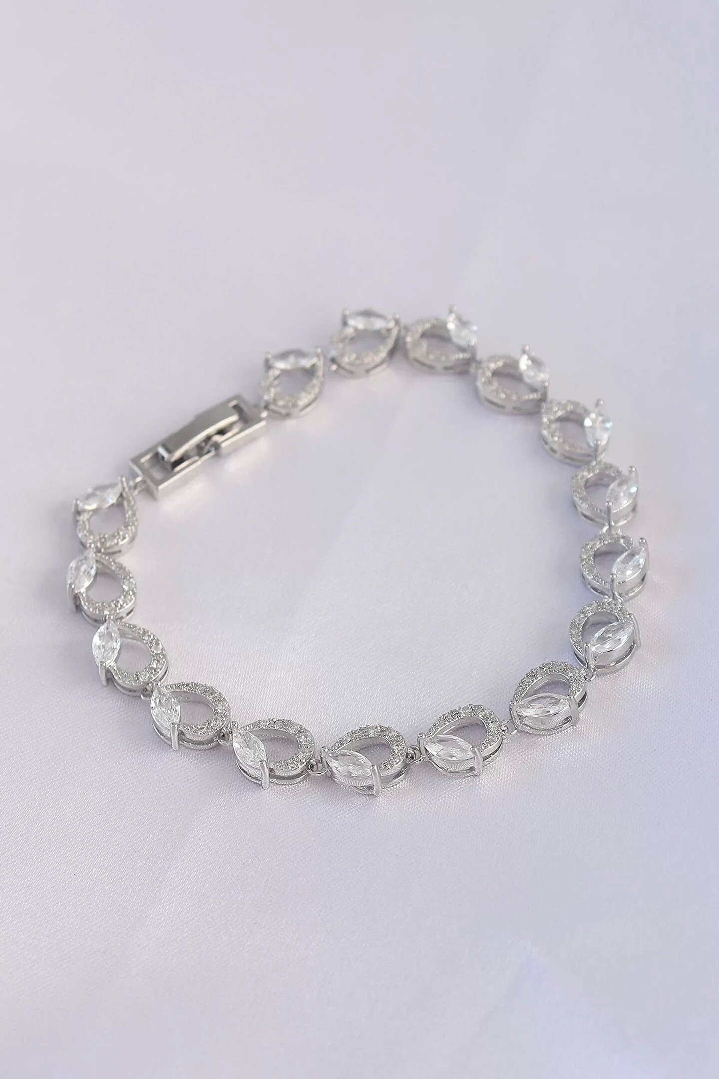 Clariss Vip Seri Pirinç Zirkon Taşlı Gümüş Renk Arpa Model Bileklik