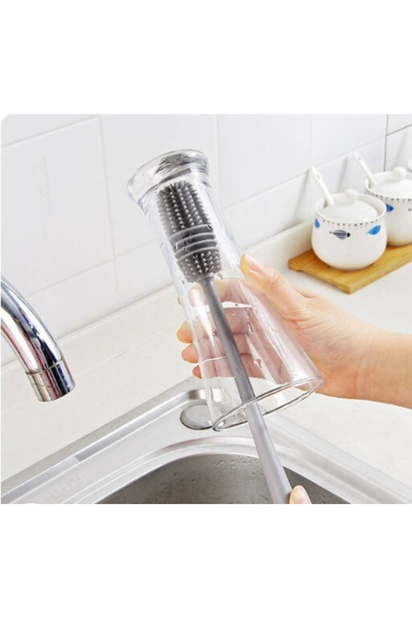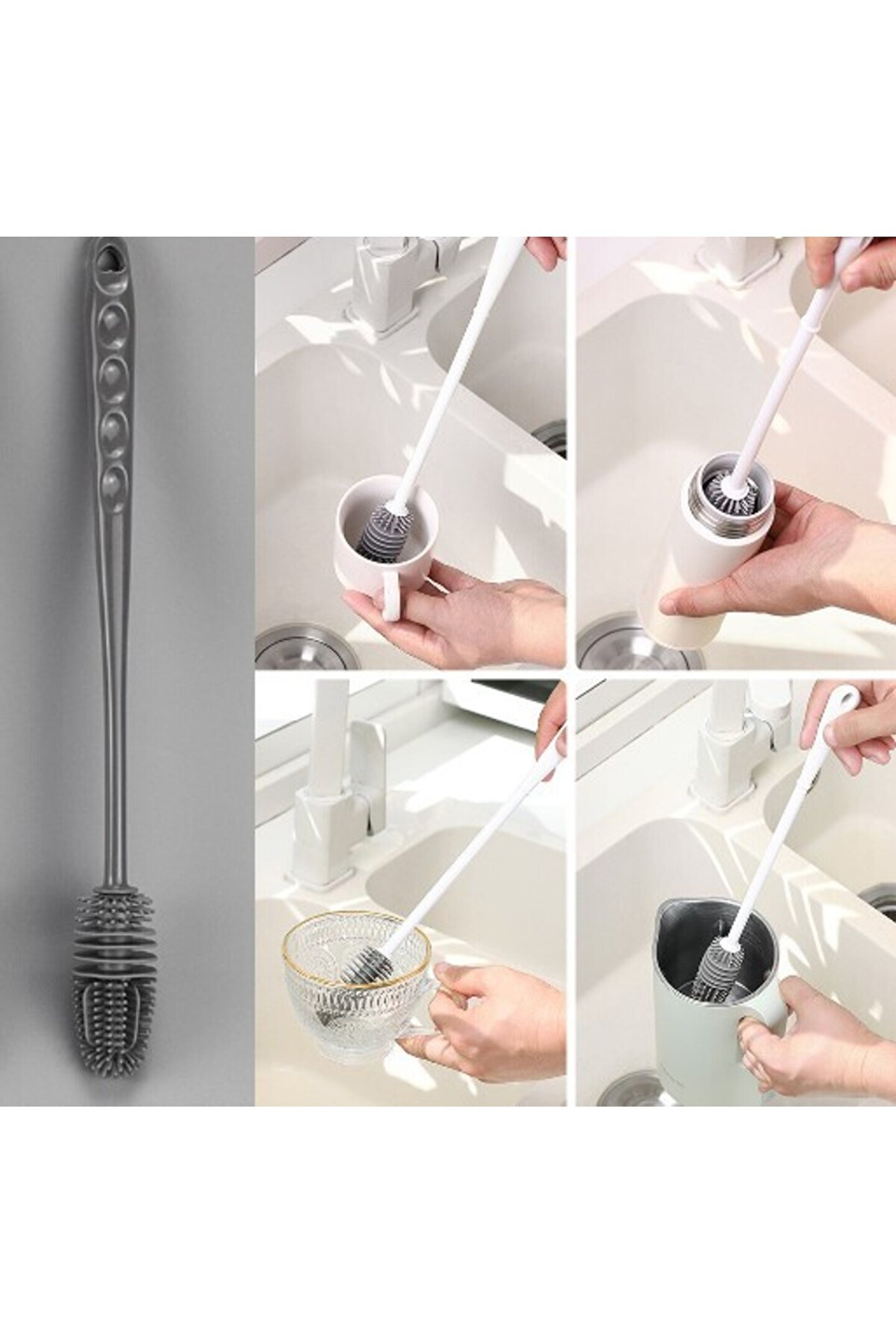 • Fırça, güçlü uygulanabilirliği ile süt şişeleri, dar bardakları, termoslar ve vazolar gibi dar girişli eşyalar için uygundur