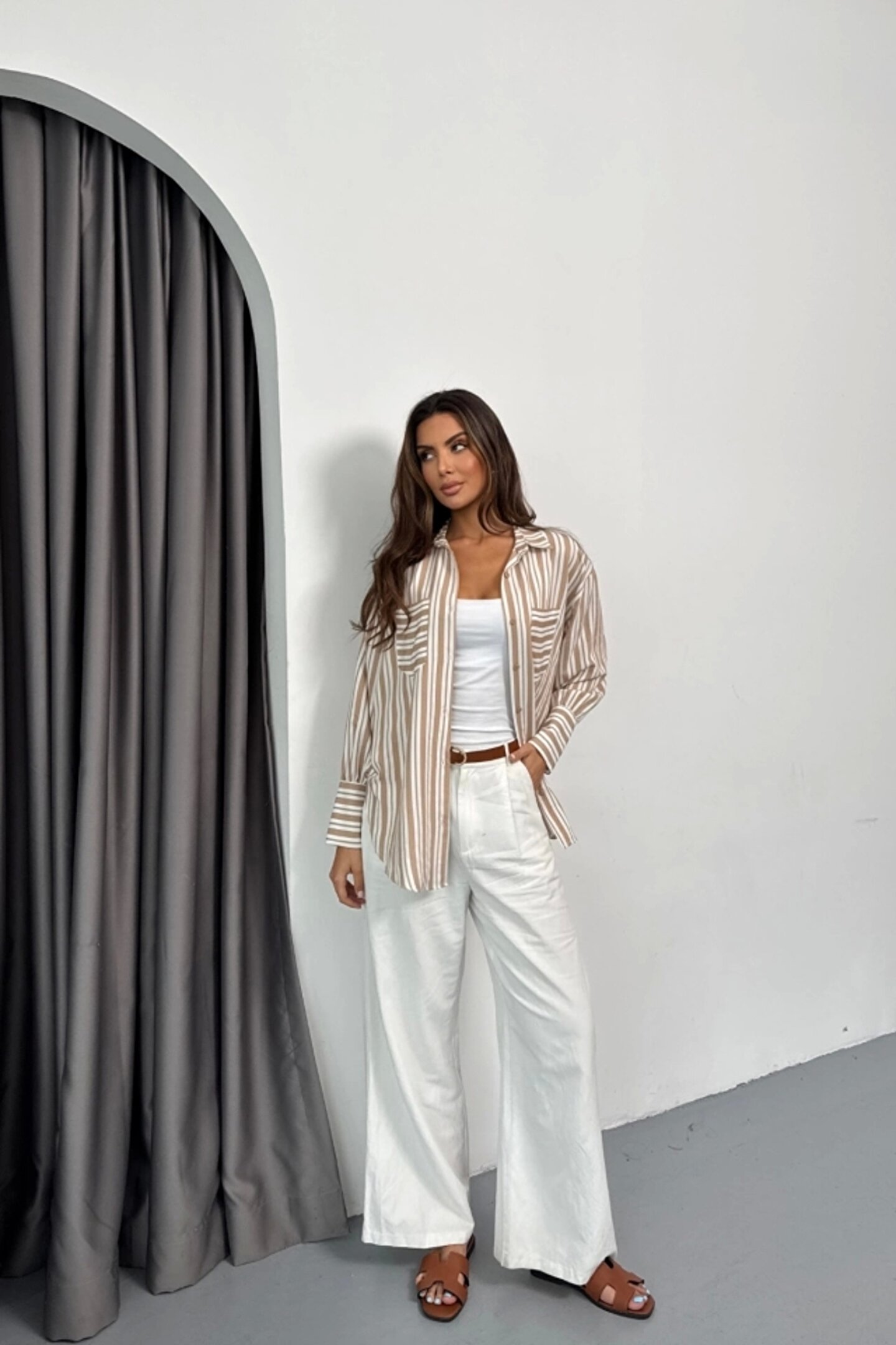 ÇİZGİLİ GÖMLEK - Bej