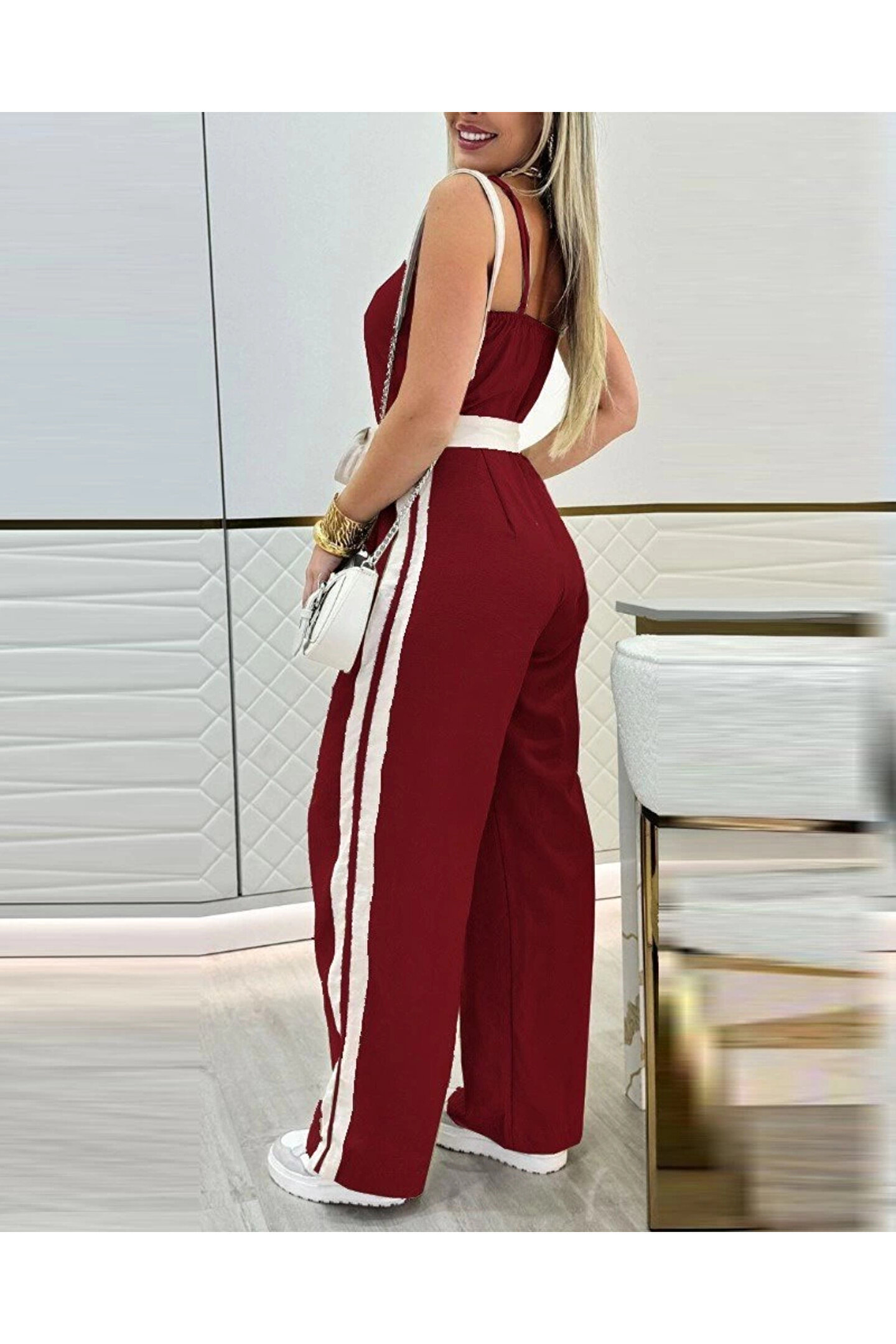 Kadın Ip Askılı Straplez Belden Kuşaklı Viskon Iki Iplik Tulum