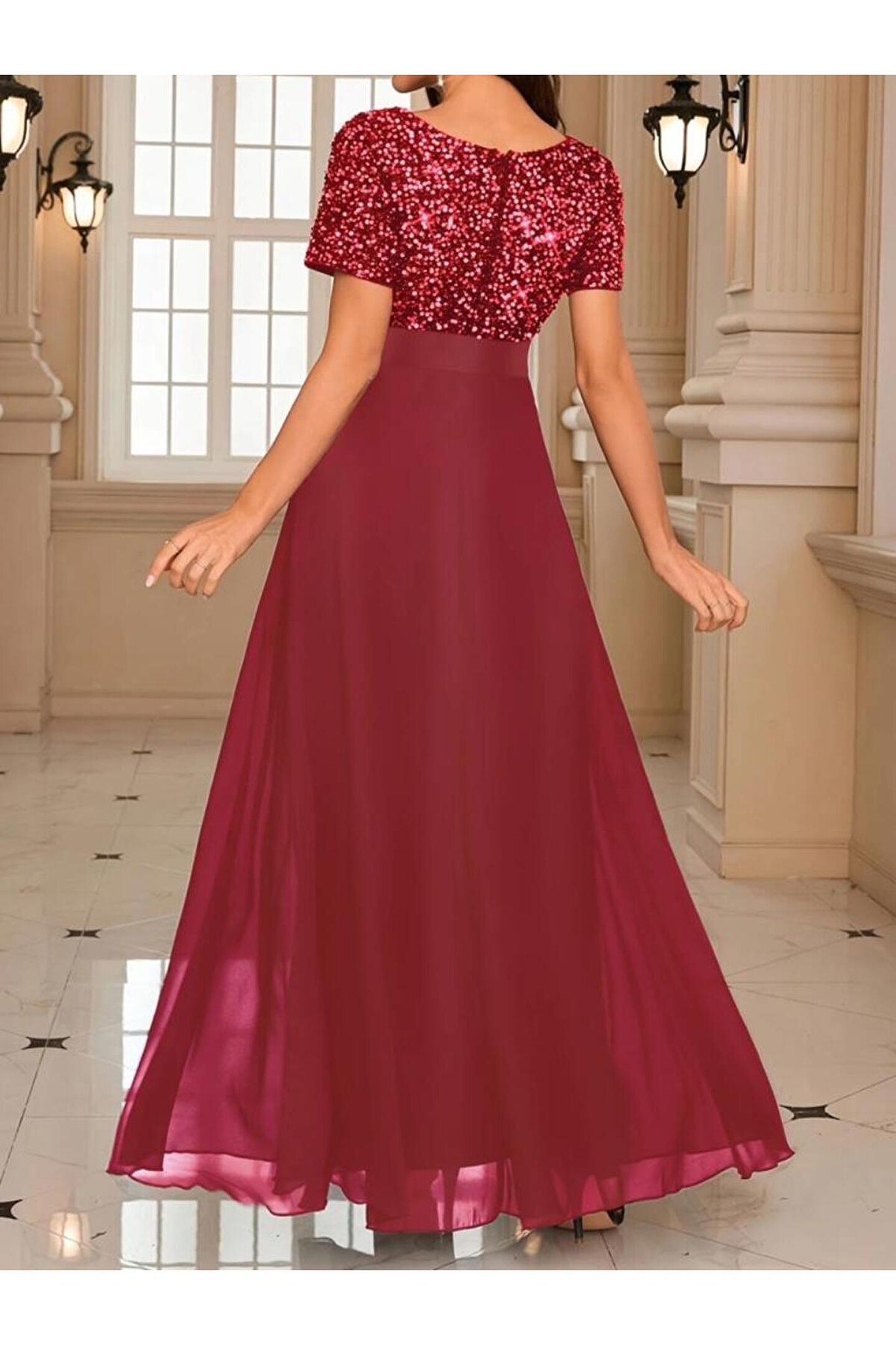 Kadın Kısa Kollu Derin V Yakalı A Kesim Pulpayet Detaylı şifon Nedime Elbisesi