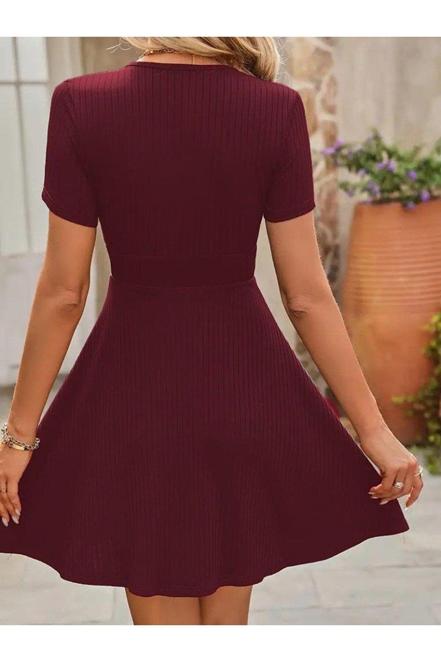 COjans Kadın Kısa Kollu Kruvaze Yaka A Kesim Kalın Fitilli Kaşkorse Elbise