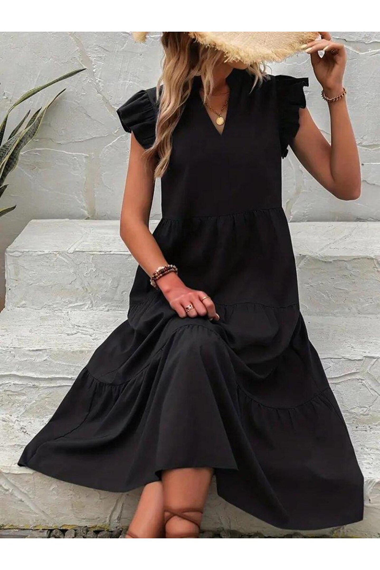 Kadın Kısa Kollu V Yakalı Geniş Kesim Uzun Trikoton Elbise