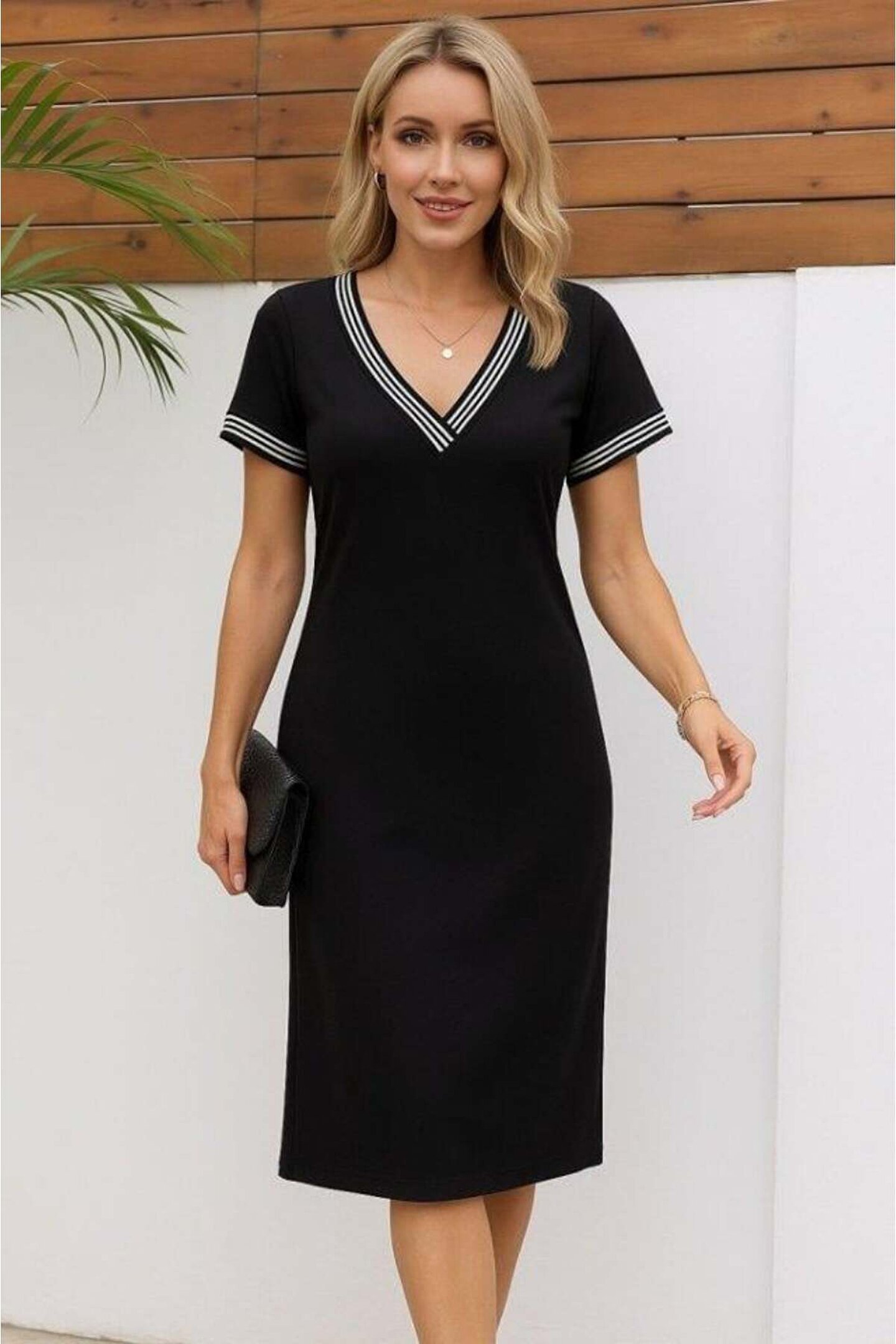 Kadın Kısa Kollu V Yakalı Yanlardan Yırtmaç Ve Düğmeli Viskon Iki Iplik Elbise
