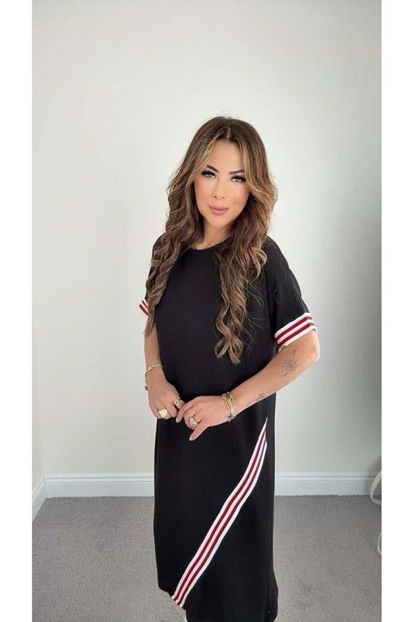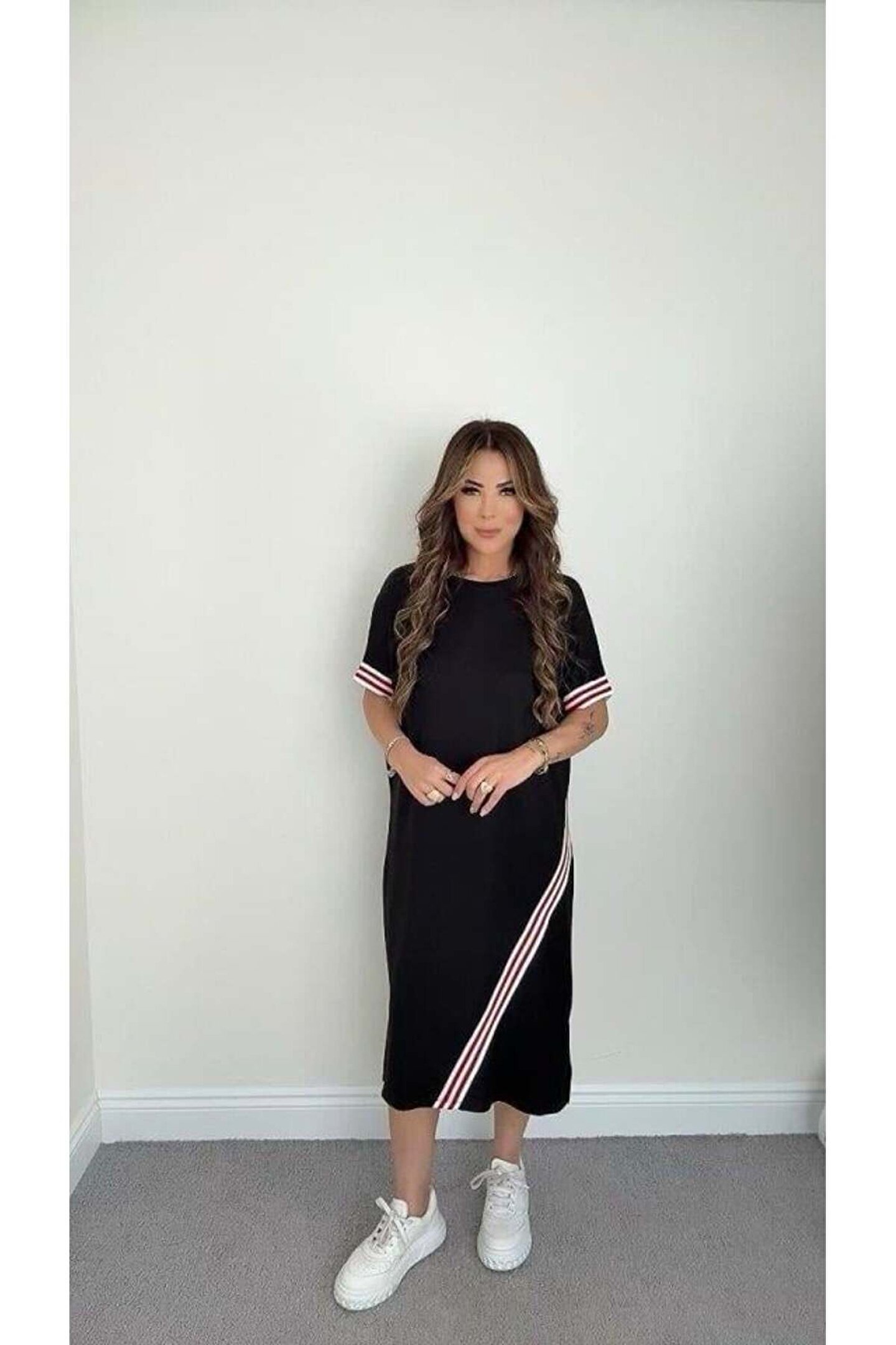 Kadın Kol Ve Etek şerit Detaylı Midi Boy Elbise