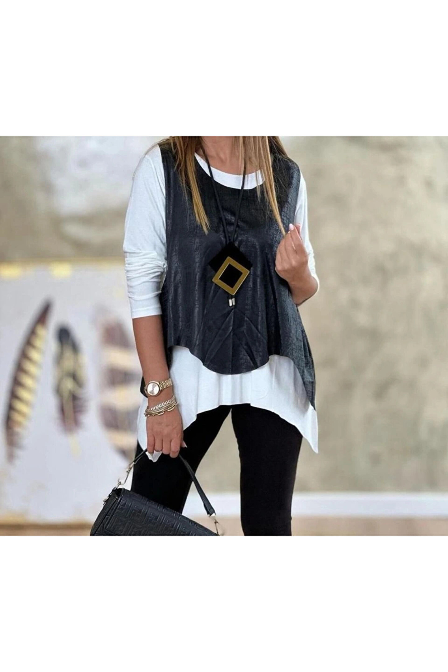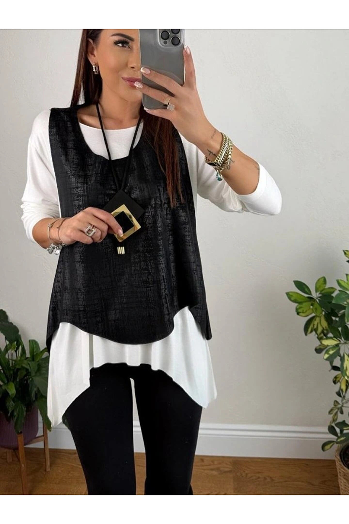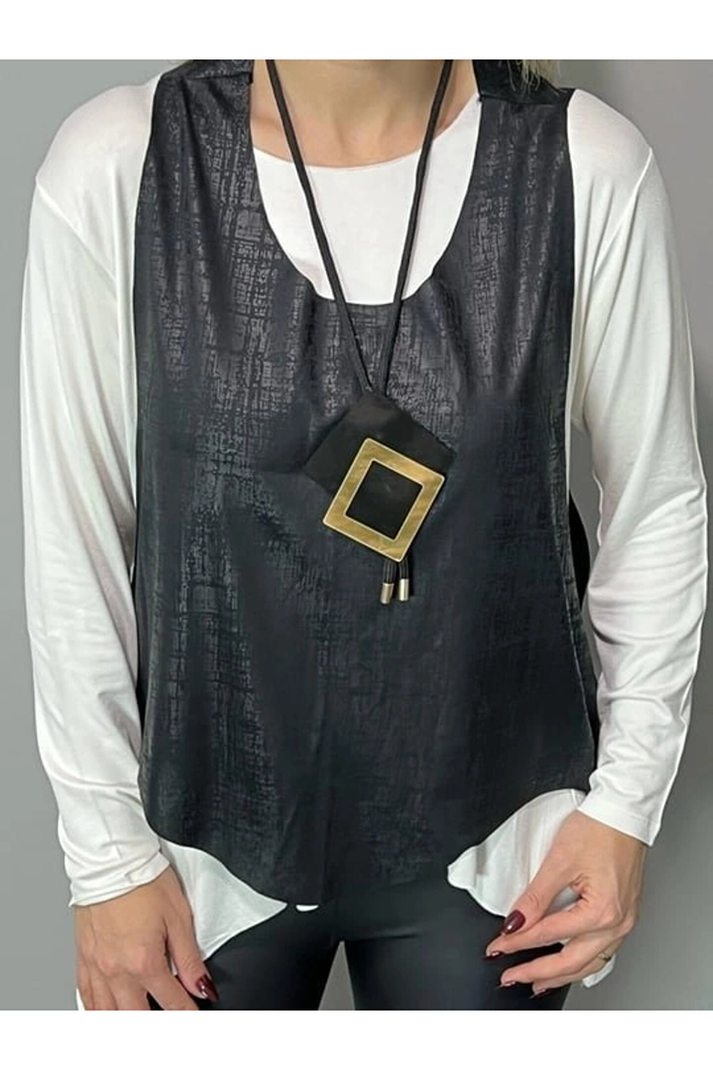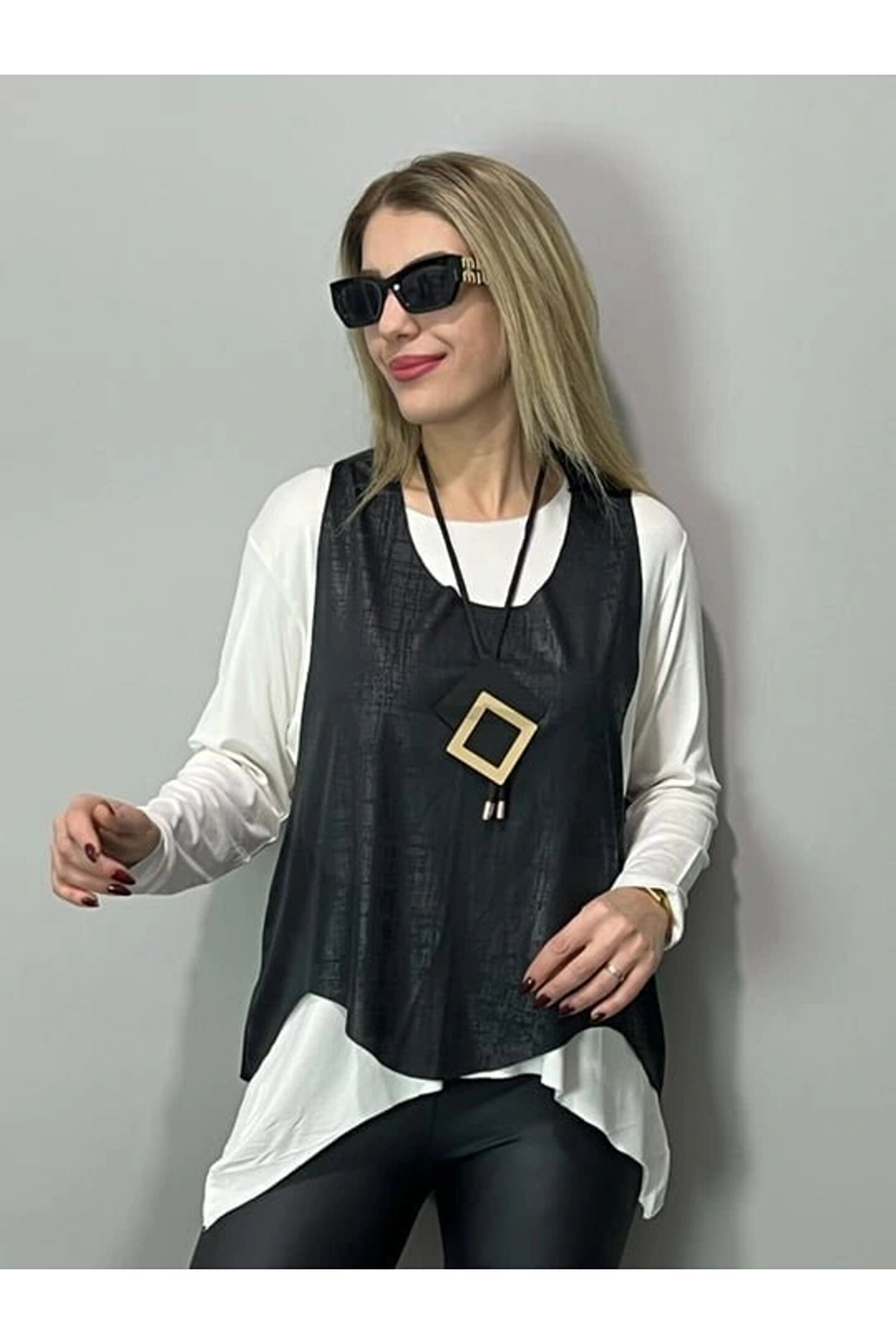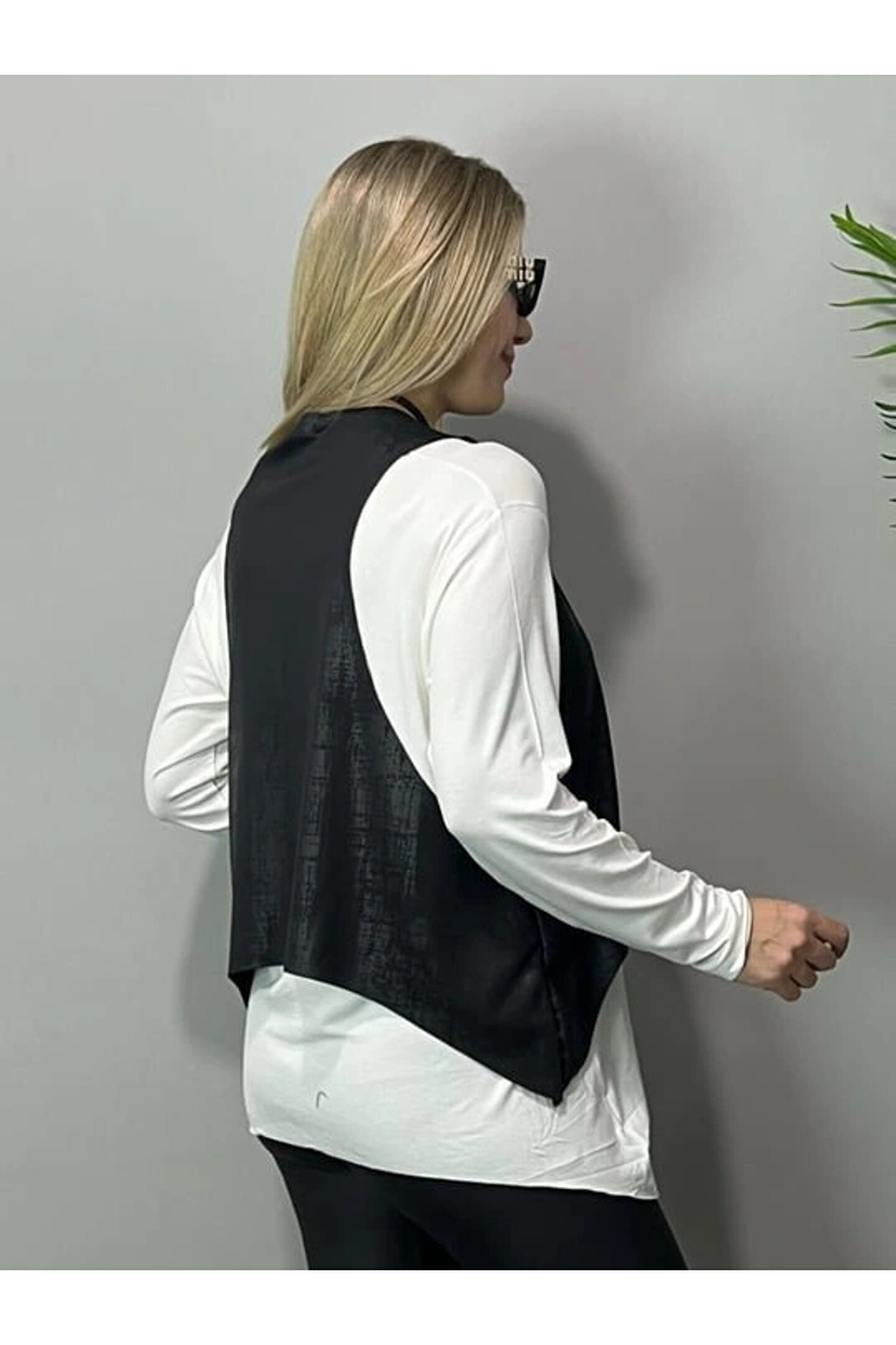 COjans Kadın Siyah Deri Yelekli Kolye Dahil üçlü Takım