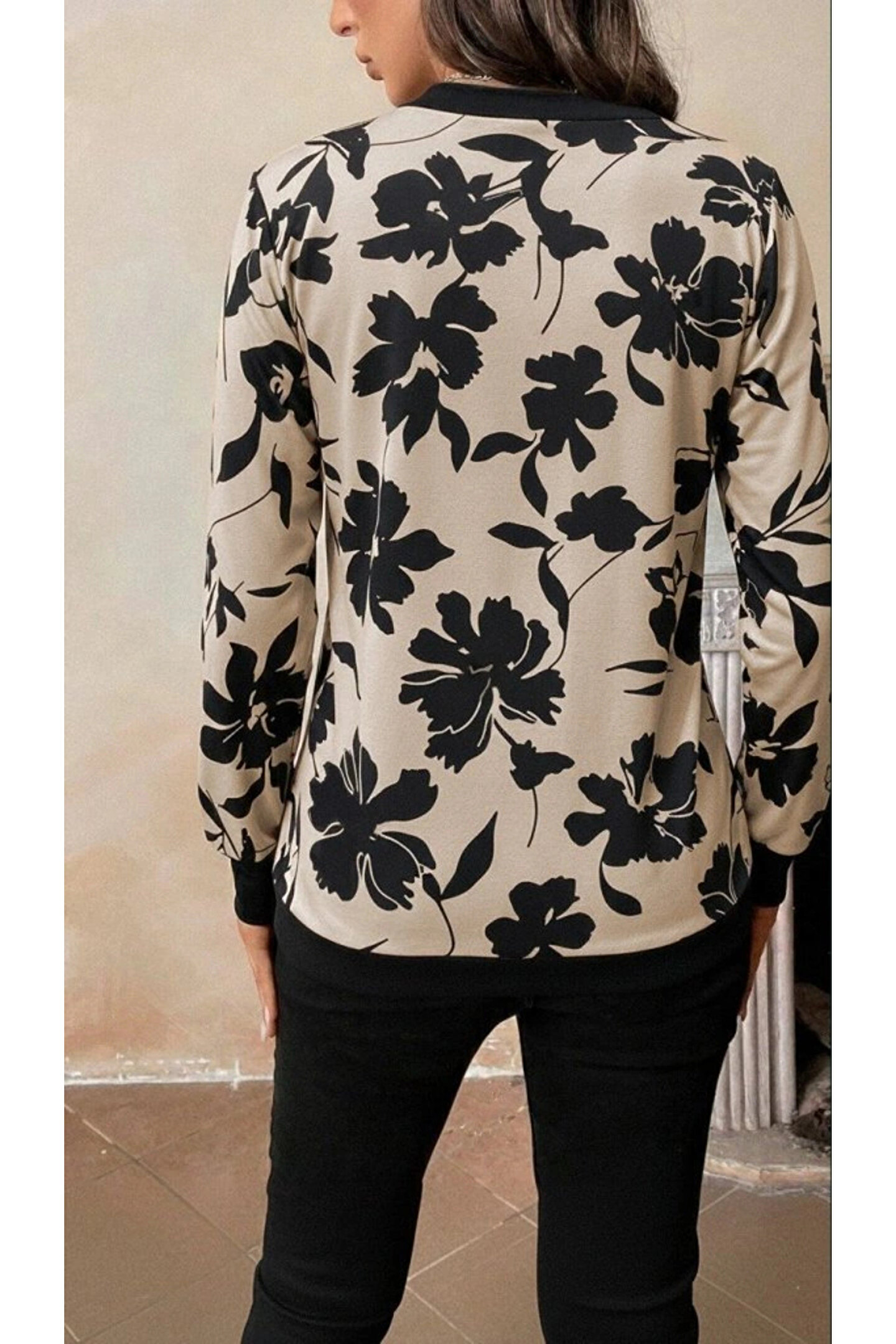 COjans Kadın Uzun Kollu V Yakalı Desenli Süprem Bluz