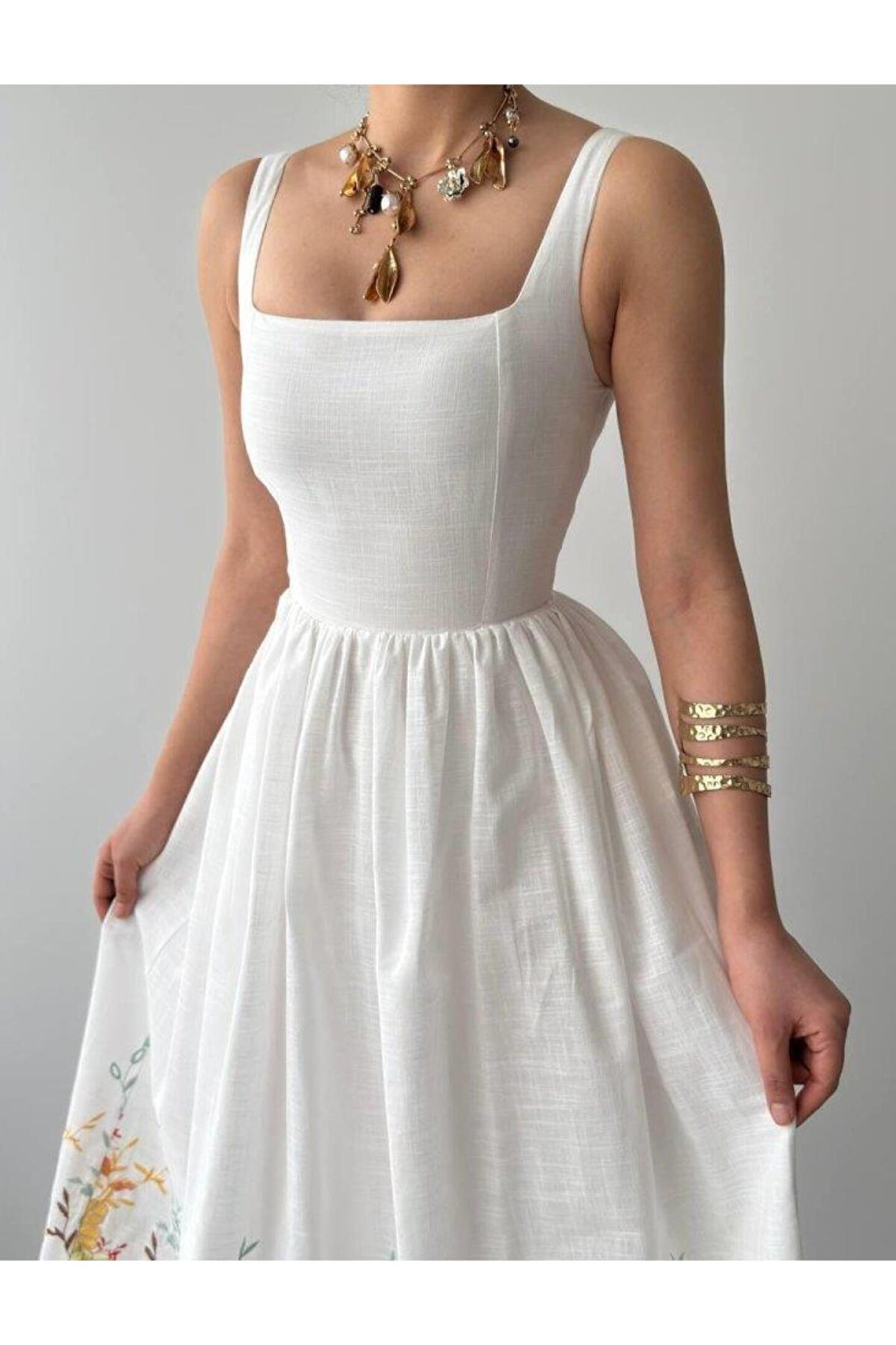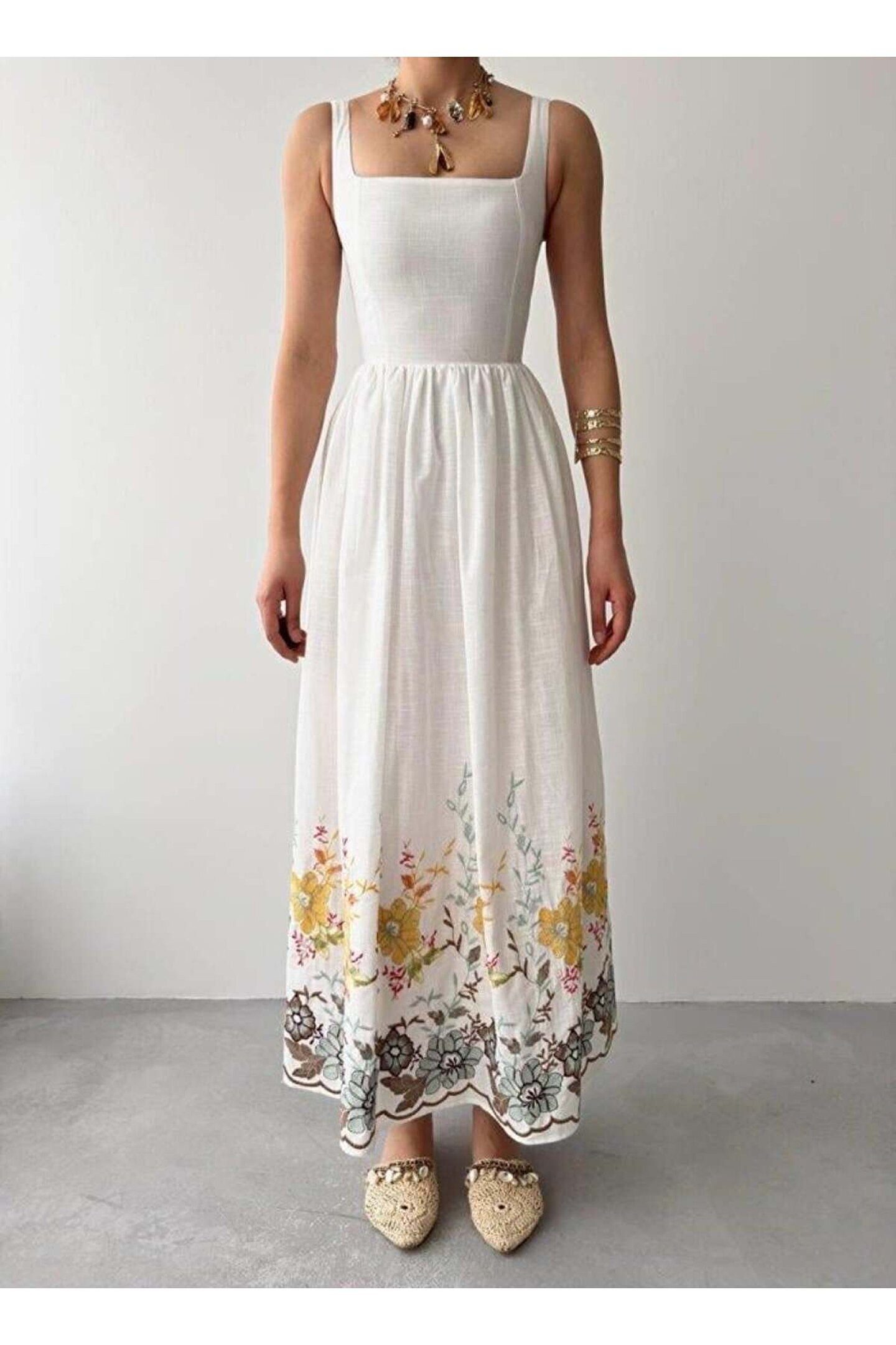 Mazi Çiçek Desenli Elbise