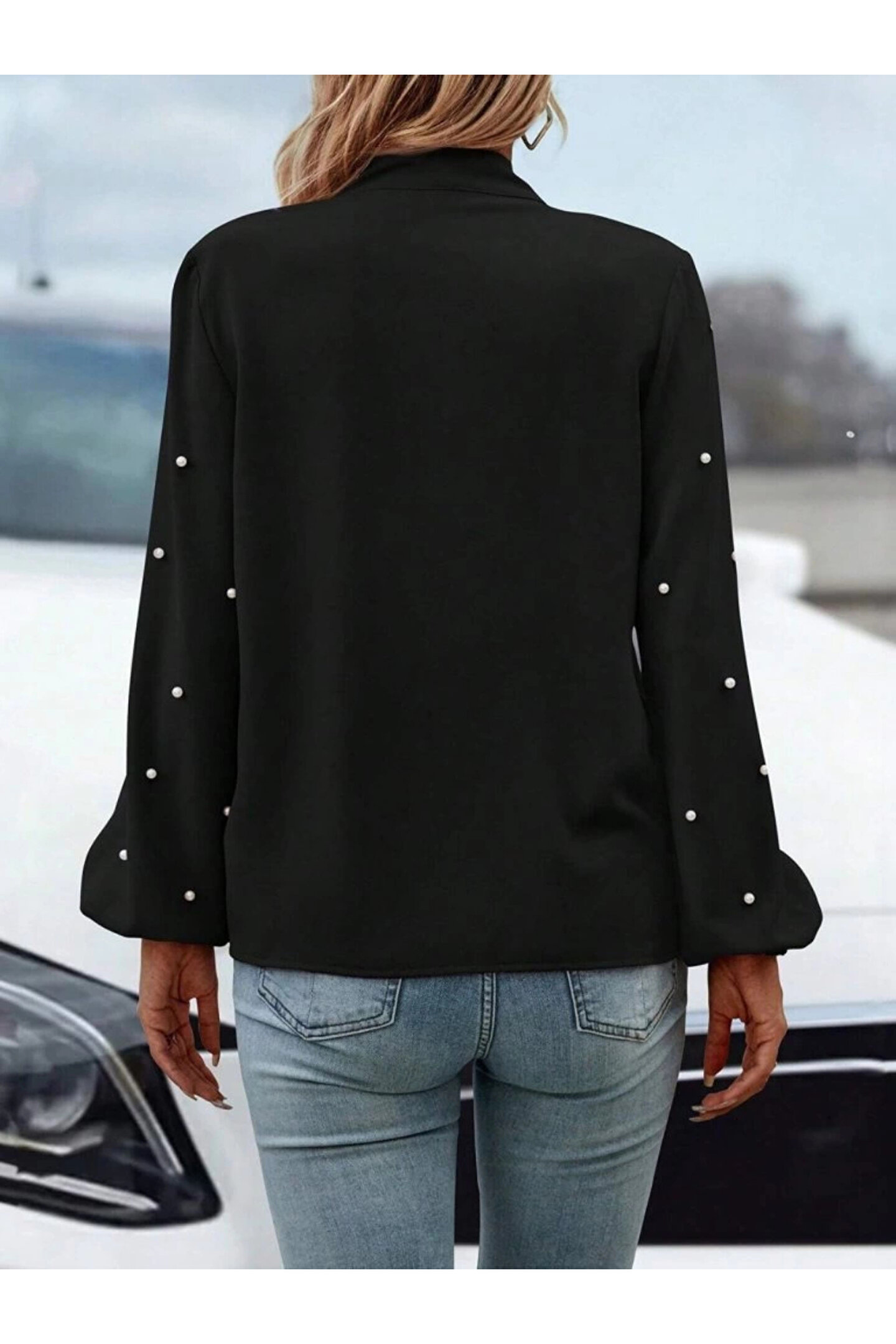 COjans MDB Kadın Uzun Kollu Yakadan Fiyonklu Incili Ithal Krep Bluz