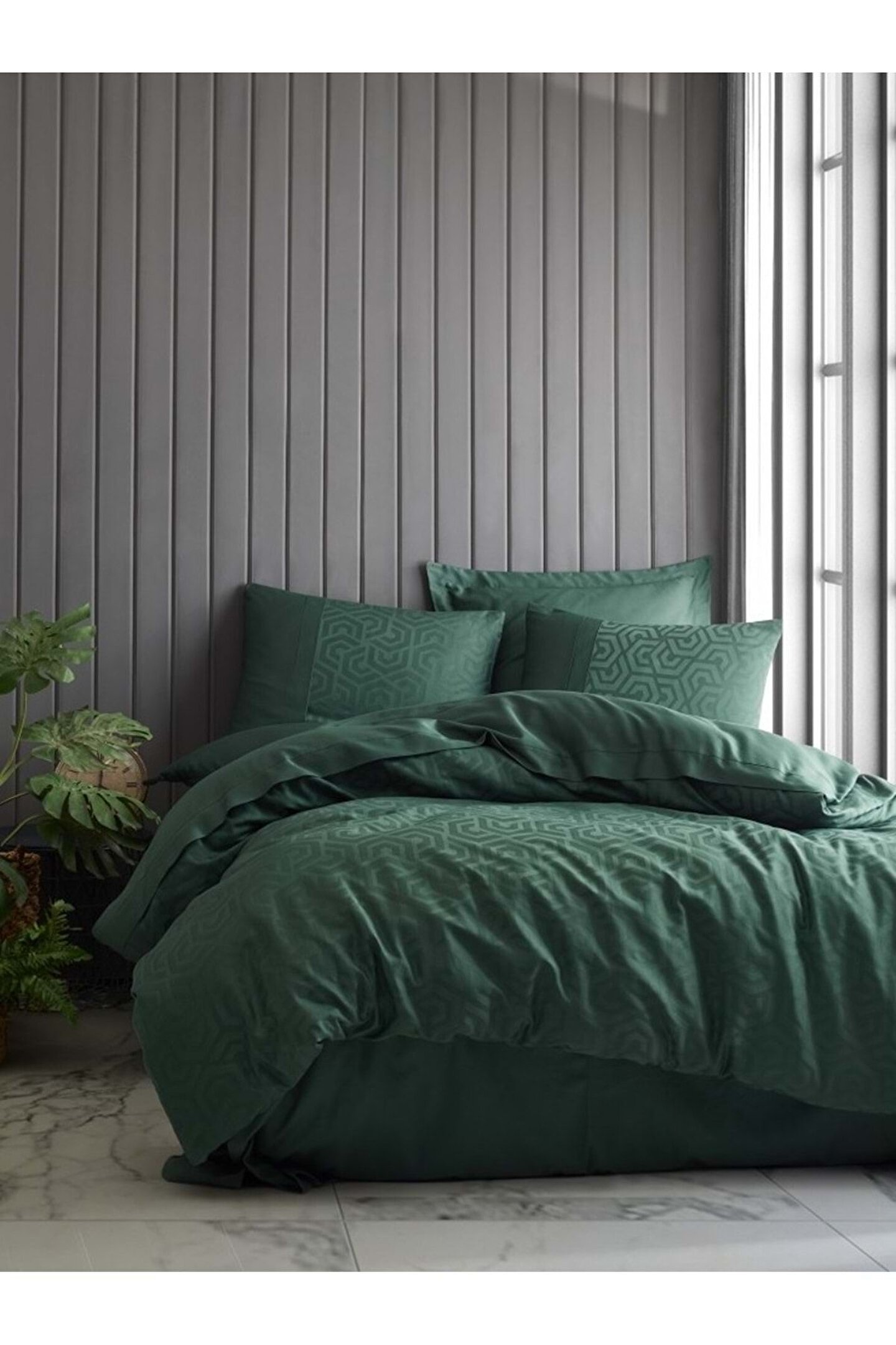 Çift Kişilik Jakarlı Saten Nevresim Takımı Hexa Yeşil Emh