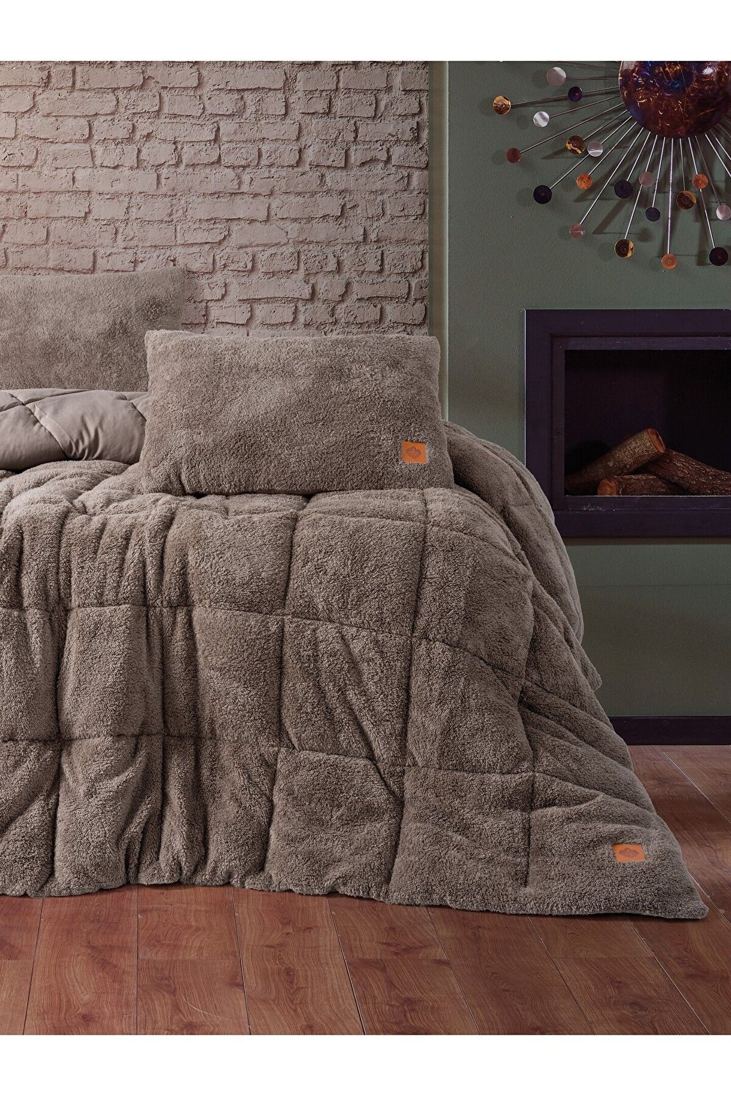 Çift Kişilik Peluş Yorgan Seti Bej 195x215 cm