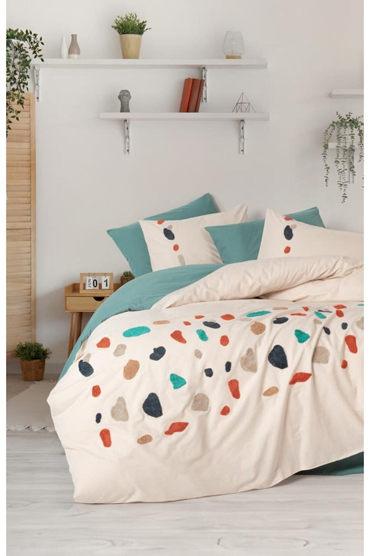 Puff Nakışlı Ranforce Çift Kişilik Nevresim Takımı Gaja Mint