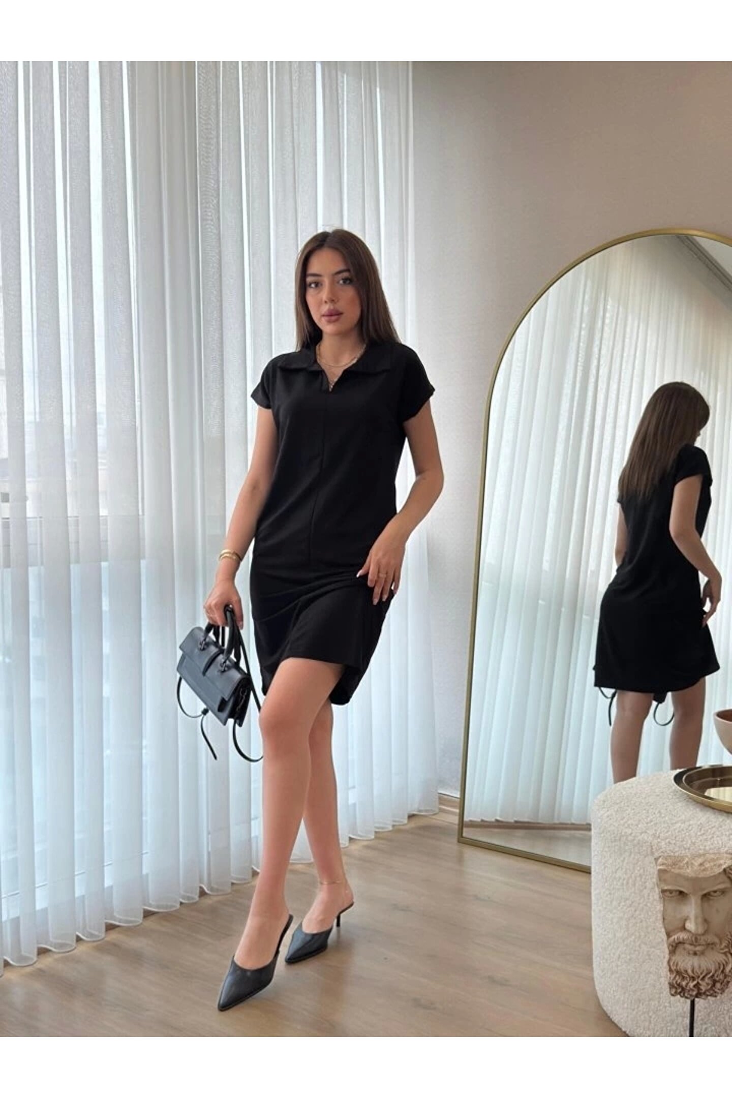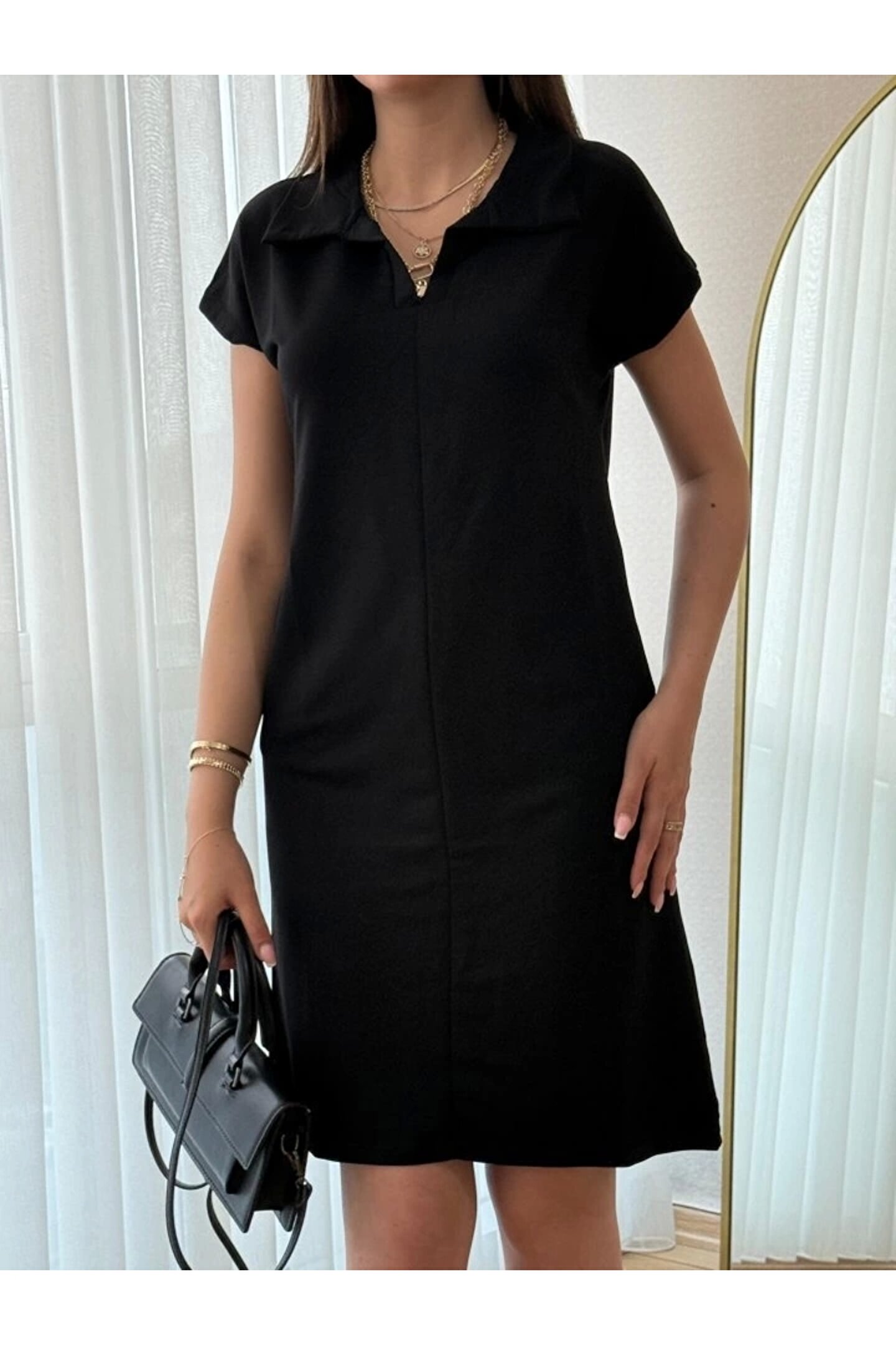 Kadın Kısa Kollu Yakalı Viskon Iki Iplik Elbise