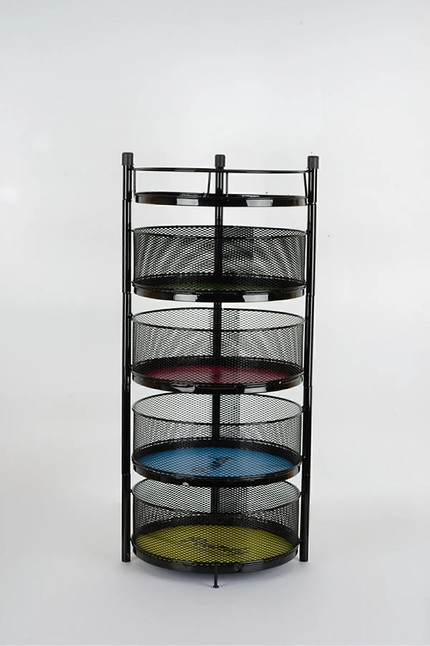 Kule Sebzelik 5 Katlı Tepsili Açılır Metal Patates Soğan Meyvelik Sepetli Rafı Siyah