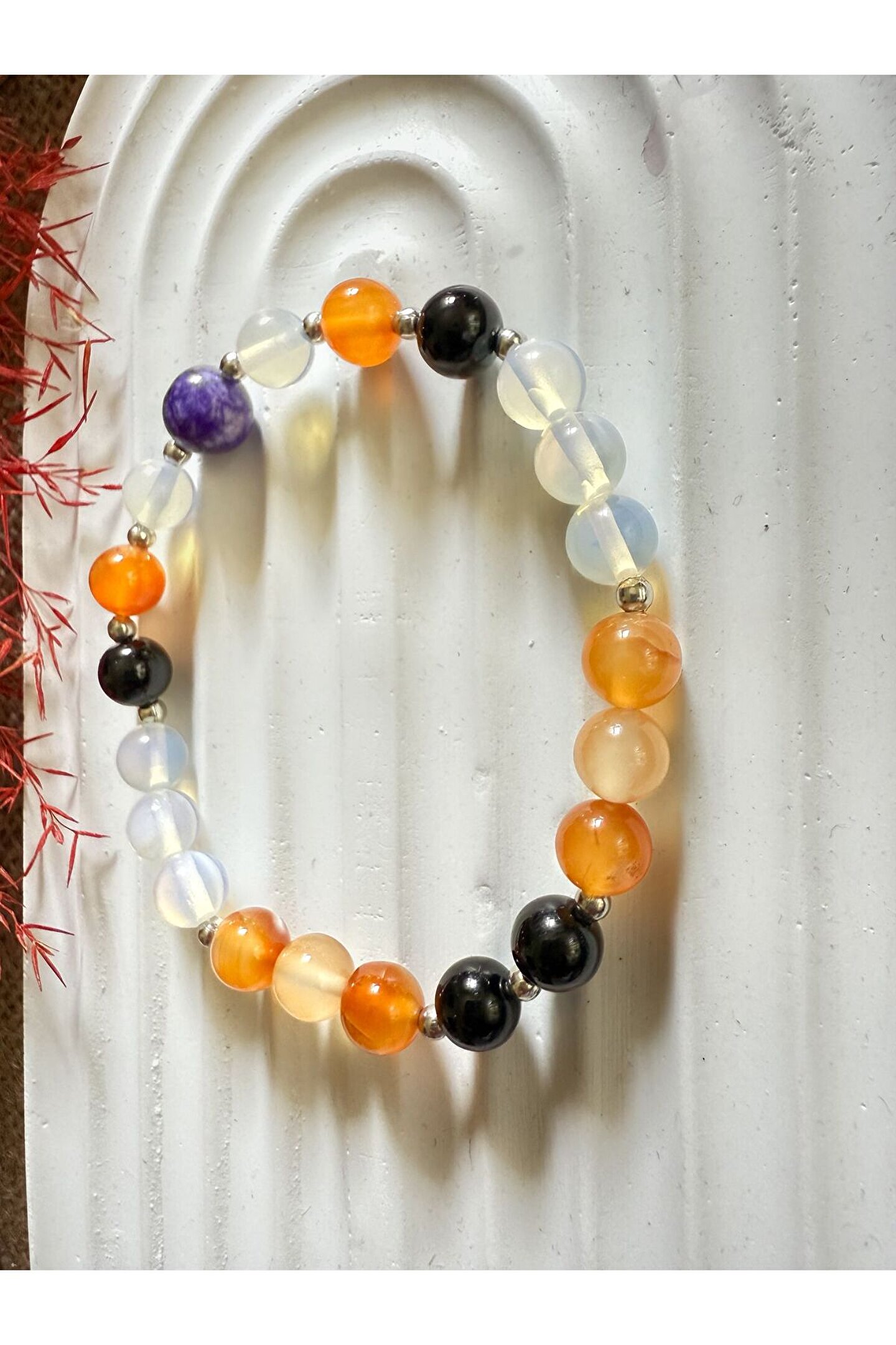 - oval kesim doğal taşlar, zarif ve şık bir görünüm sunar.; - Her bileklik, kişiye özel olumlama özelliğiyle enerji ve pozitiflik katmak için tasarlanmıştır.; - Doğal taş kullanımı, her bilekliğin benzersiz ve otantik bir dokunuş kazanmasını sağlar.; - Nemli bir bezle kolayca temizlenebilen yapısı sayesinde bakımı pratiktir.; - Türkiye'de üretilen bu bileklikler, yerel işçiliğin ve zanaatkarlığın bir yansımasıdır.; - Kadın ve kızlar için uygun olan bu bileklik, her yaş grubuna hitap eder.;