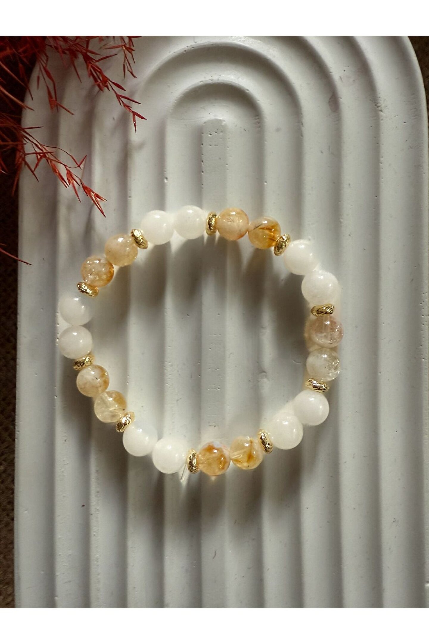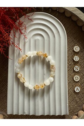 - Oval kesim sitrin ve ay taşı, zarif bir görünüm sunar ve her türlü kıyafetle uyum sağlar.; - Ametist taşı, enerjiyi dengelemeye ve zihni sakinleştirmeye yardımcı olur.; - Doğal taş kullanımı, bilekliğin otantik ve benzersiz bir dokunuş kazanmasını sağlar.; - Nemli bir bezle kolayca temizlenebilir; böylece bilekliğiniz her zaman ilk günkü gibi parlayabilir.; - Türkiye menşeli bu bileklik, yerel üretimden gurur duyan kullanıcılar için idealdir.; - Unisex tasarımı ile hem kadınlar hem de erkekler için uygundur; herkesin tarzına hitap eder.; - Genç yaş grubuna yönelik modern ve şık bir aksesuar seçeneği sunar.;